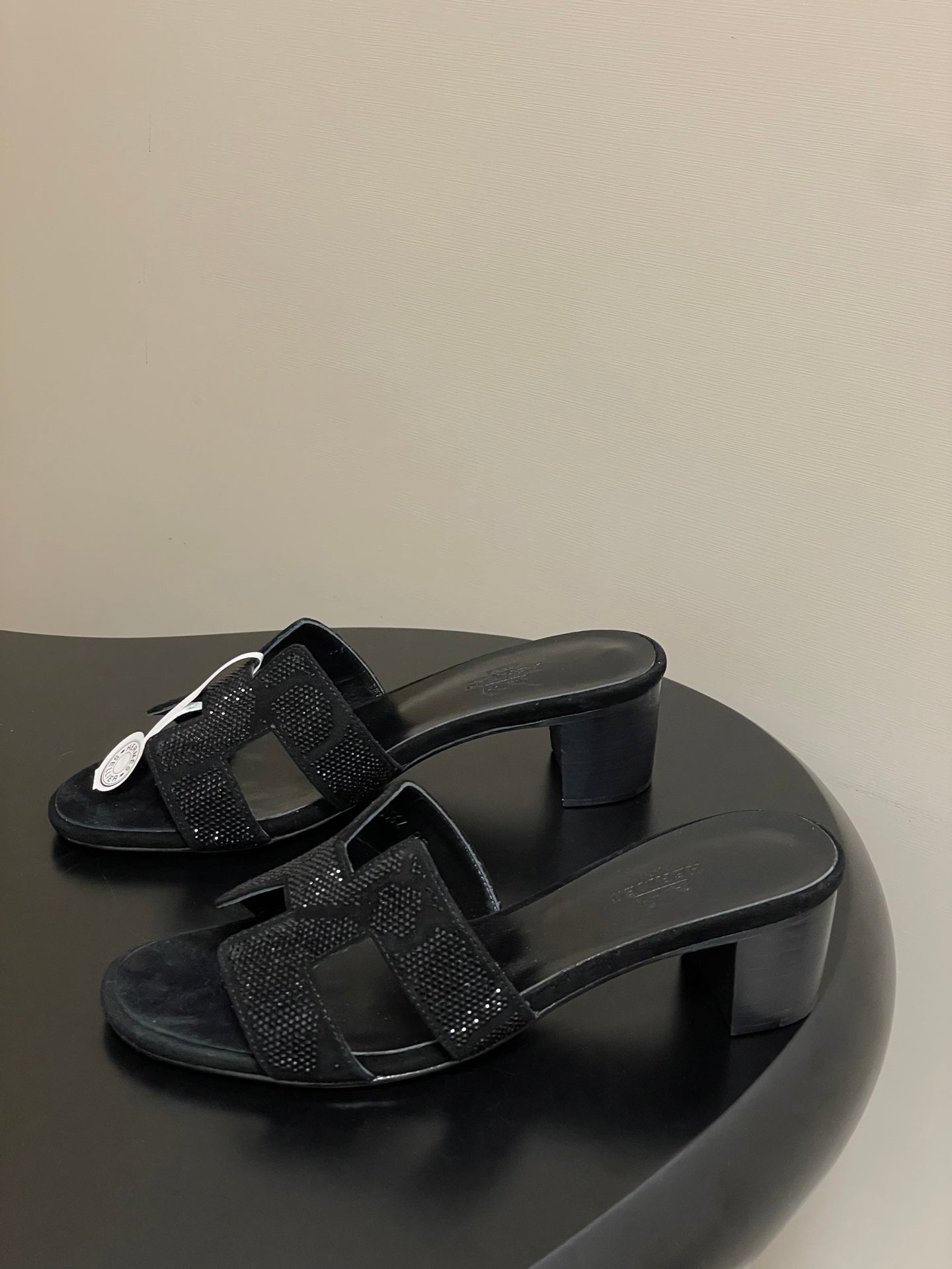 HM 25S ORAN HIGH‑HEEL SANDAL 50 MM IN BLACK LAMBSKIN WITH STONE DETAILS