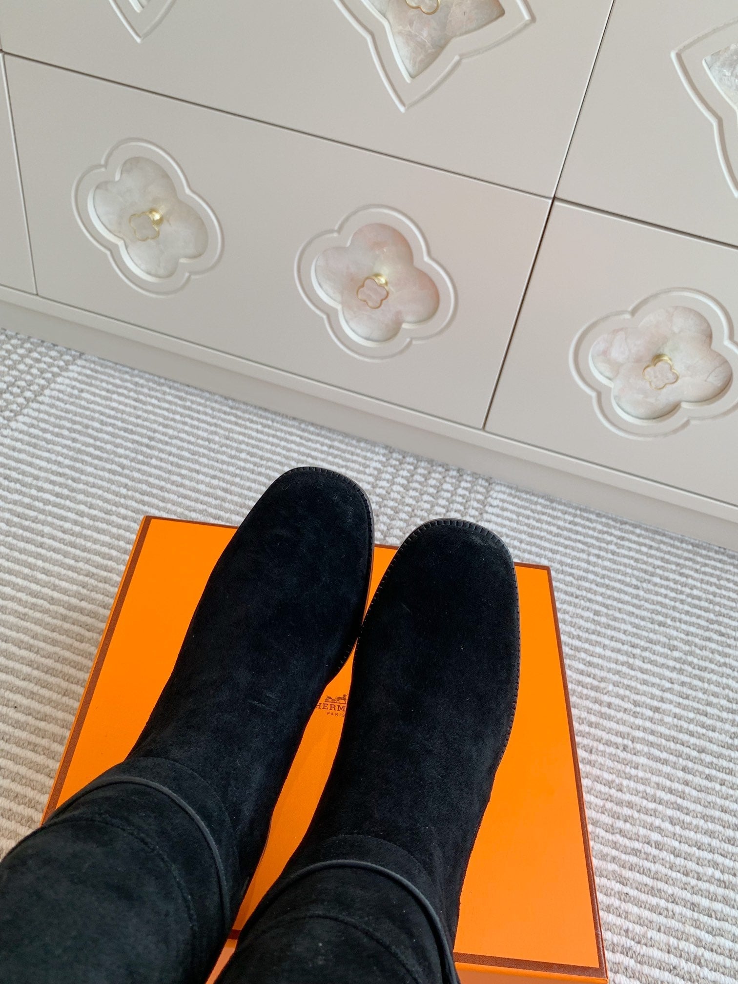 HM 25S TALL BOOTS 50 MM IN BLACK SUEDE WITH GOLD HARDWARE