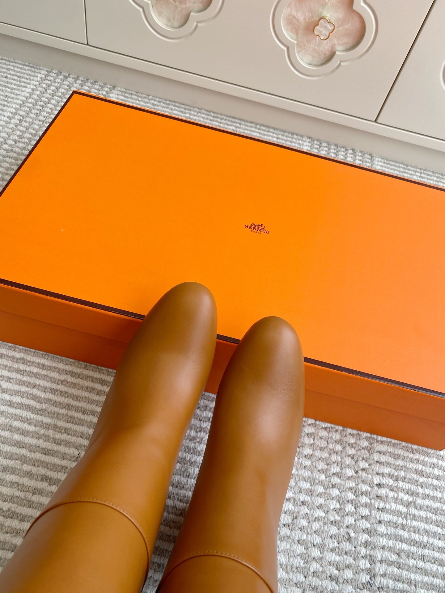 HM 25S TALL BOOTS 90 MM IN BROWN LAMBSKIN WITH SILVER HARDWARE