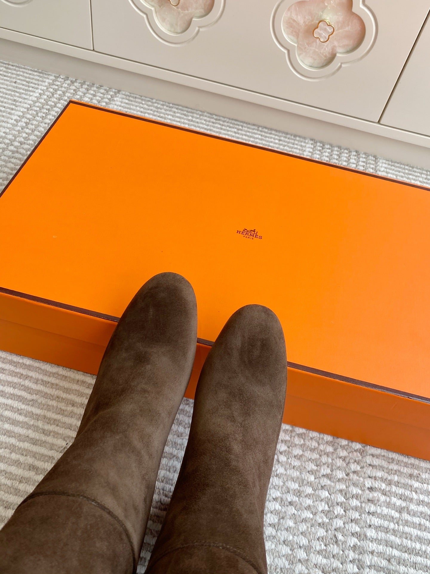 HM 25S TALL BOOTS 90 MM IN DARK BROWN SUEDE