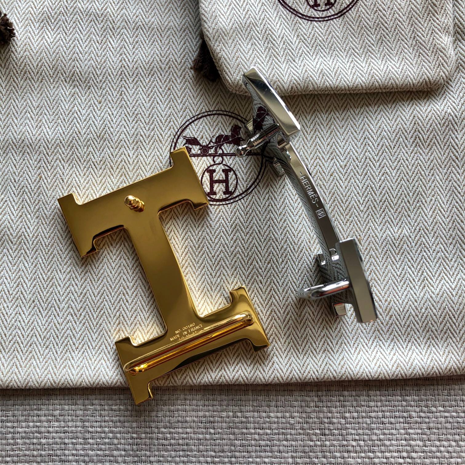 HM BELT BUCKLE & REVERSIBLE BLACK LEATHER STRAP 38MM GOLD HARDWARE
