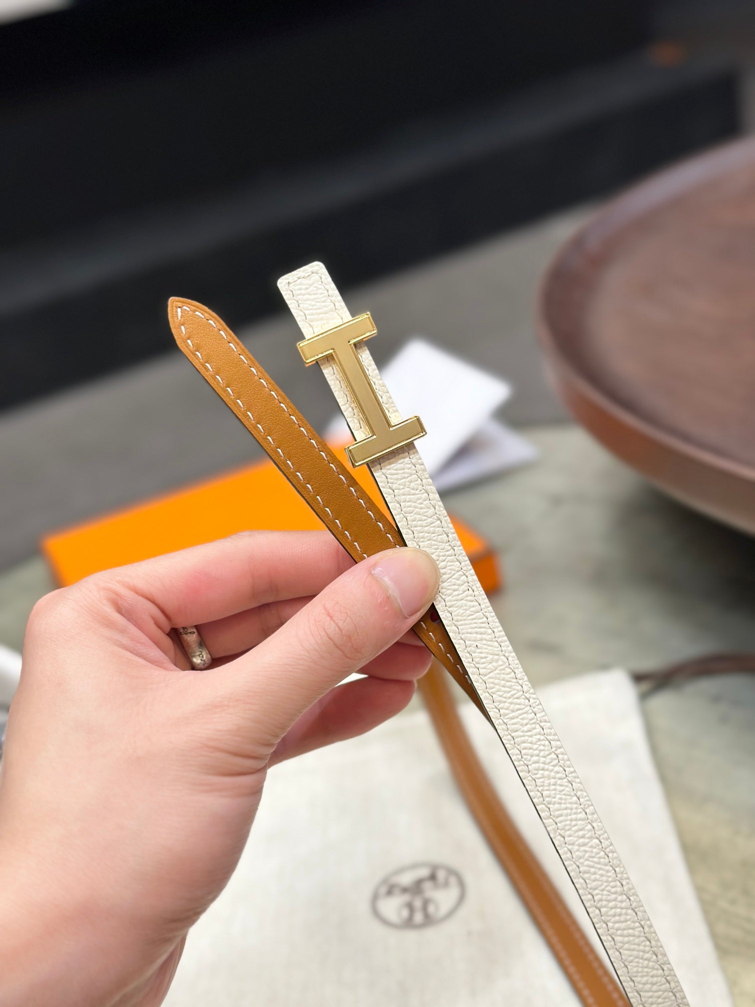 • Gold - toned hardware