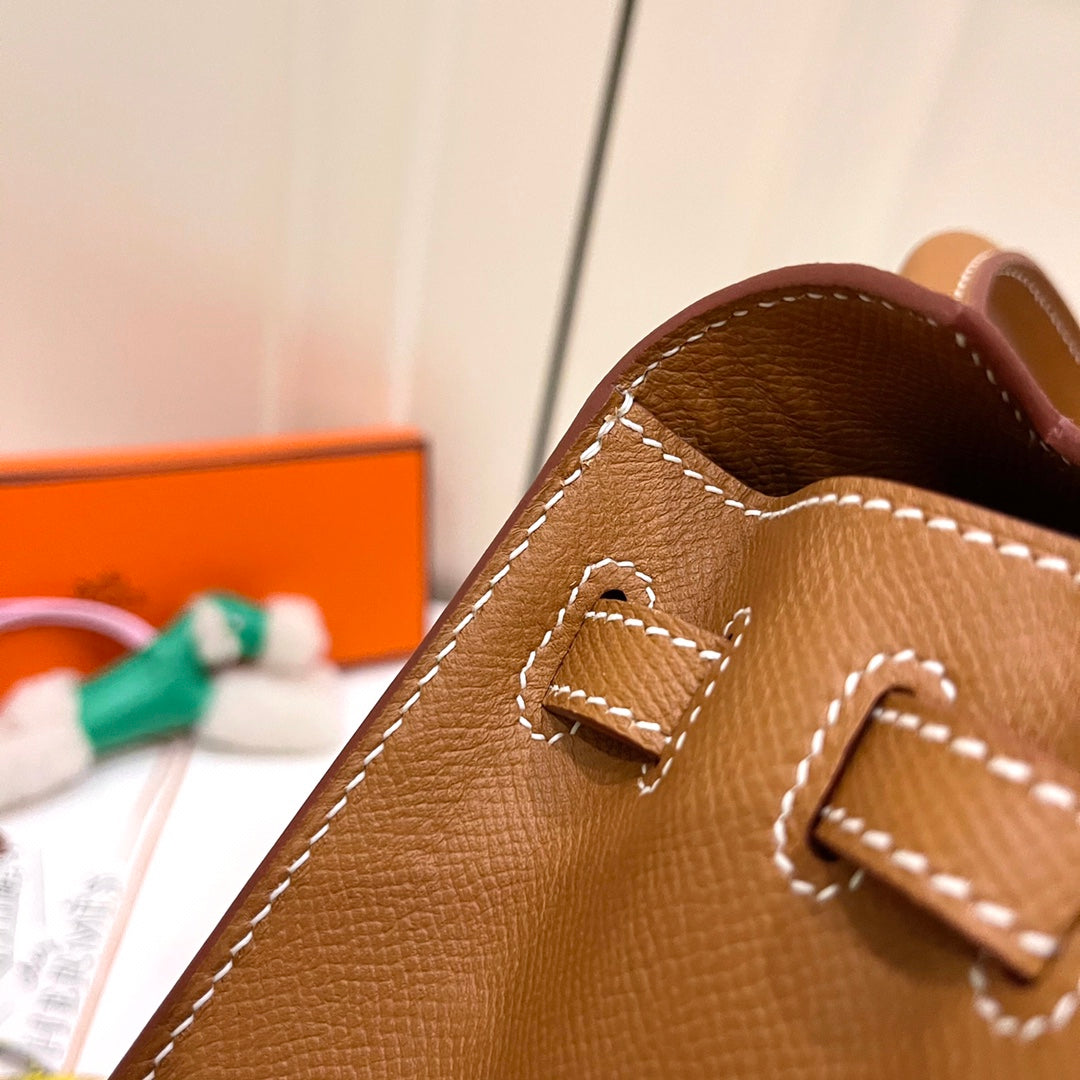 HM KELLY 25CM GOLD EPSOM LEATHER SILVER HARDWARE