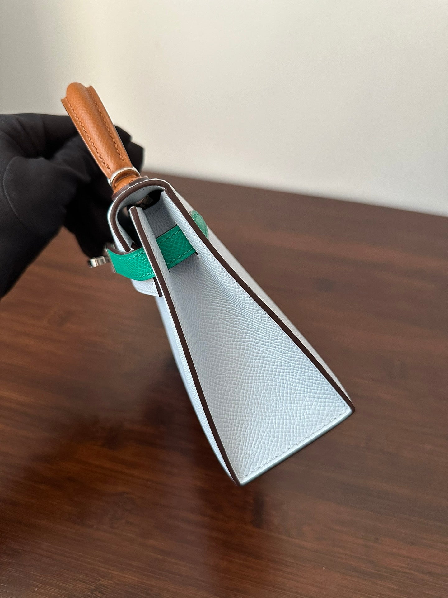 HM KELLY MINI 20 CLOUD BLUE EPSOM SILVER HARDWARE