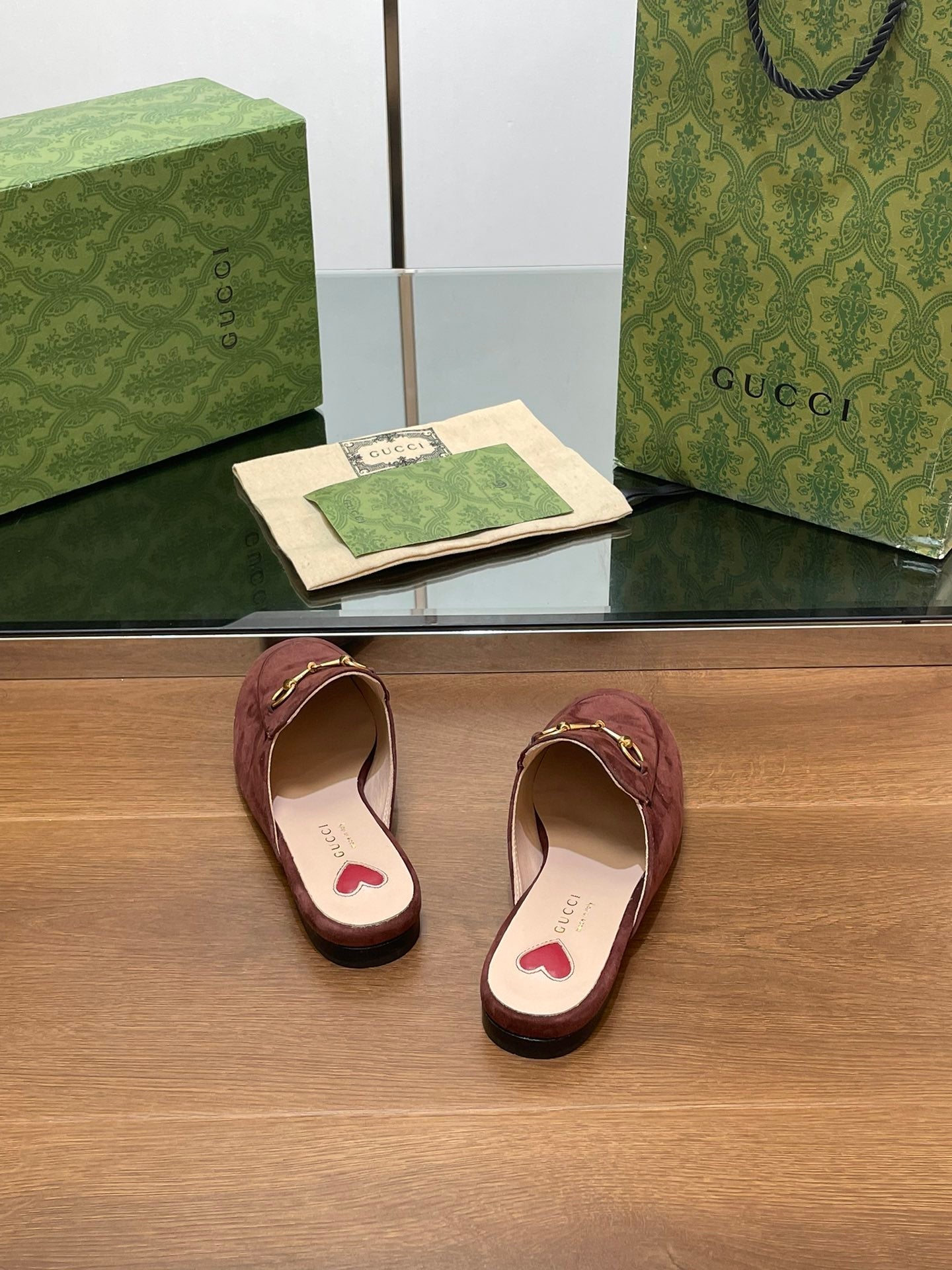HORSEBIT MULE IN UMBER BROWN SUEDE WITH GOLD HARDWARE