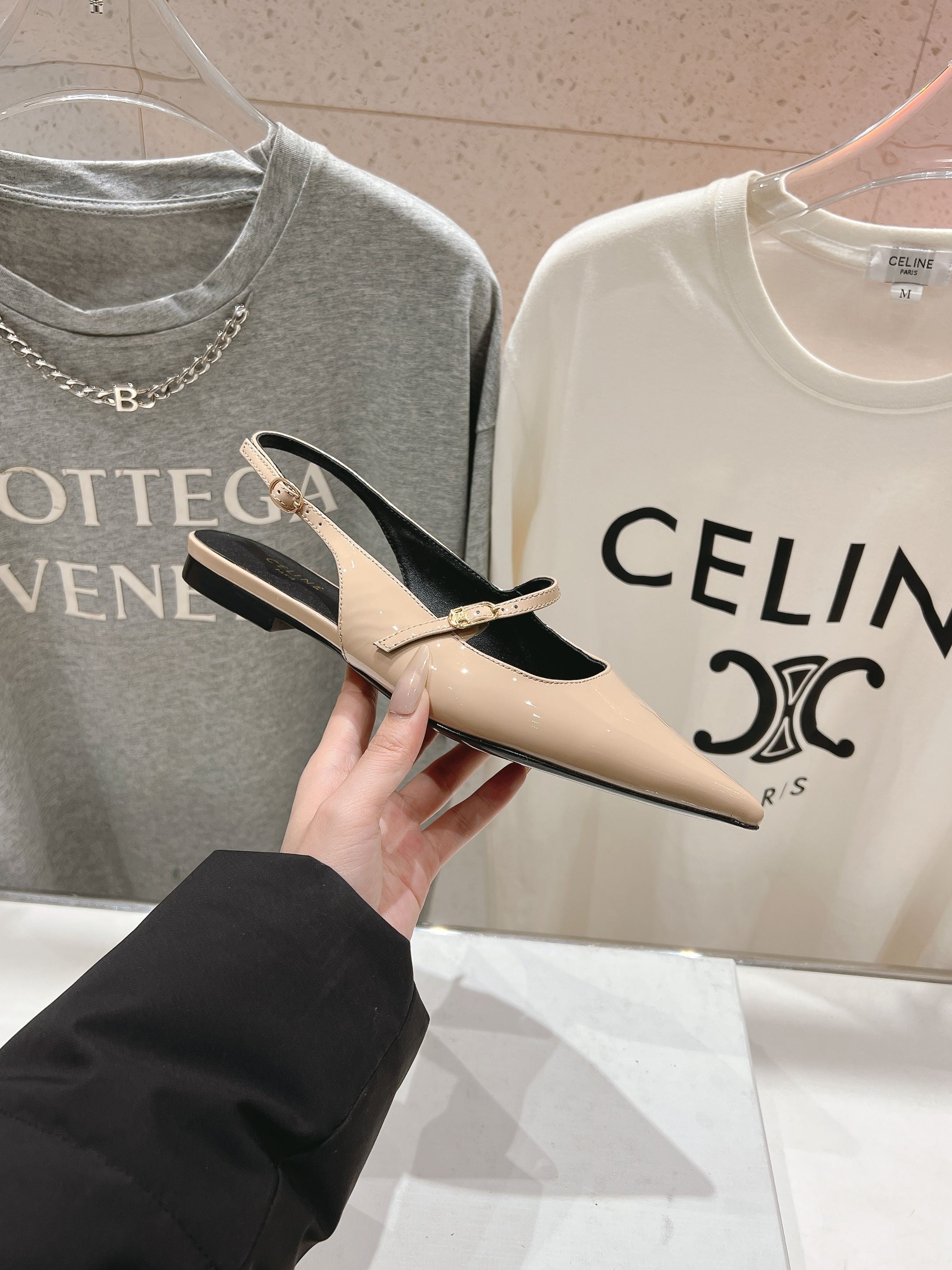 JUDY FLAT SLINGBACK IN TAN BEIGE PATENT CALFSKIN