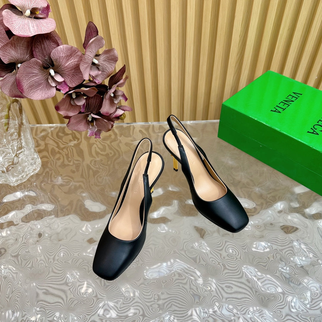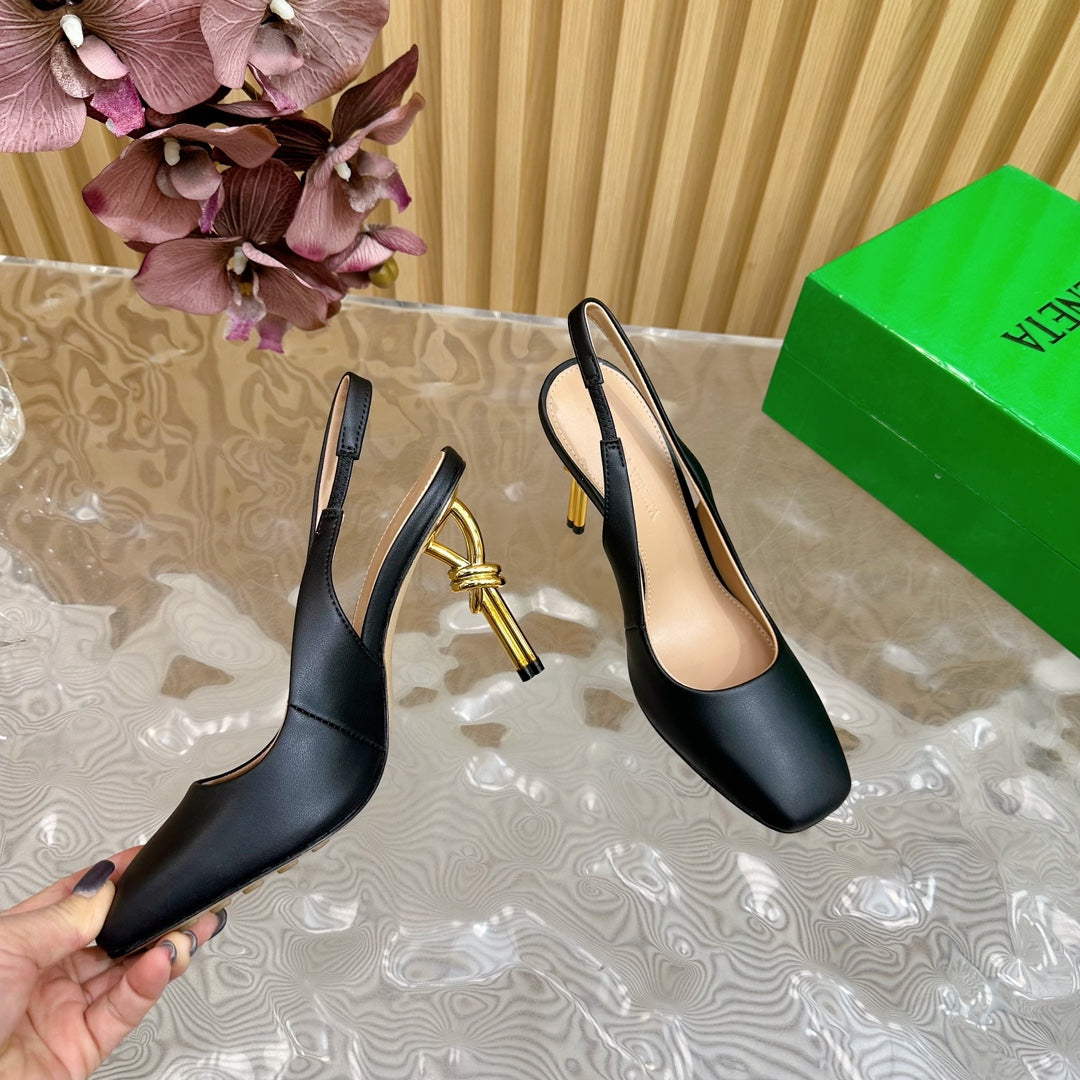 • Material: Calfskin with gold finished metal knot heel