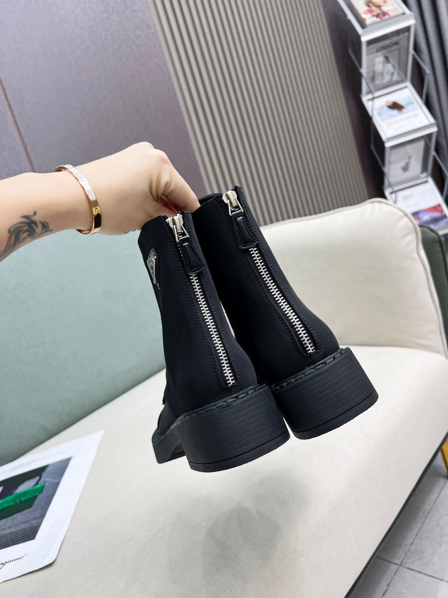 LACE-UP ANKLE BOOTS IN BLACK DENIM AND SHEEPSKIN LINING