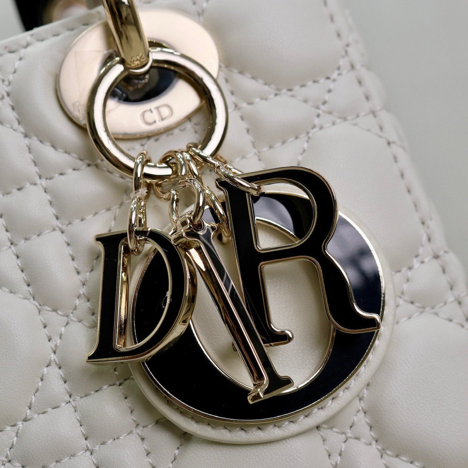 LADY BAG 20 IN WHITE QUILTED MACROCANNAGE CALFSKIN BLACK STRAP