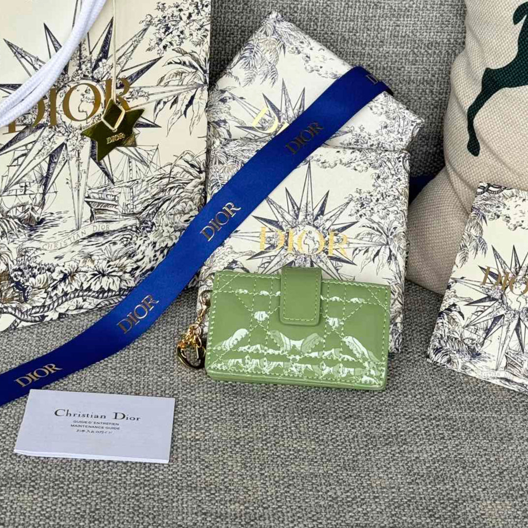 LADY JASMINE CARD HOLDER 10 IN LIGHT GREEN QUILTED PATENT CALFSKIN