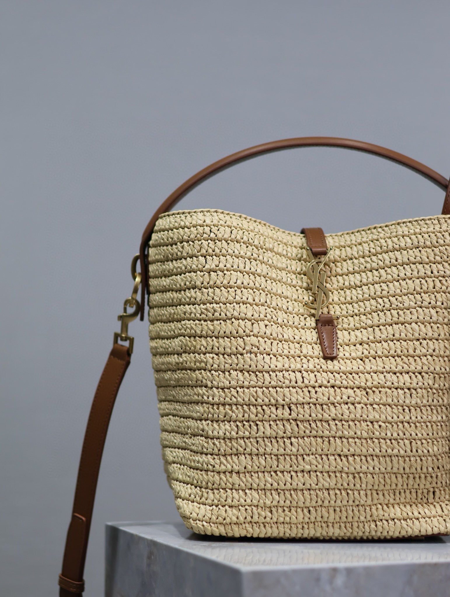 LE 37 DE RAFIA TRENZADA Y PIEL DE CURTIDO VEGETAL