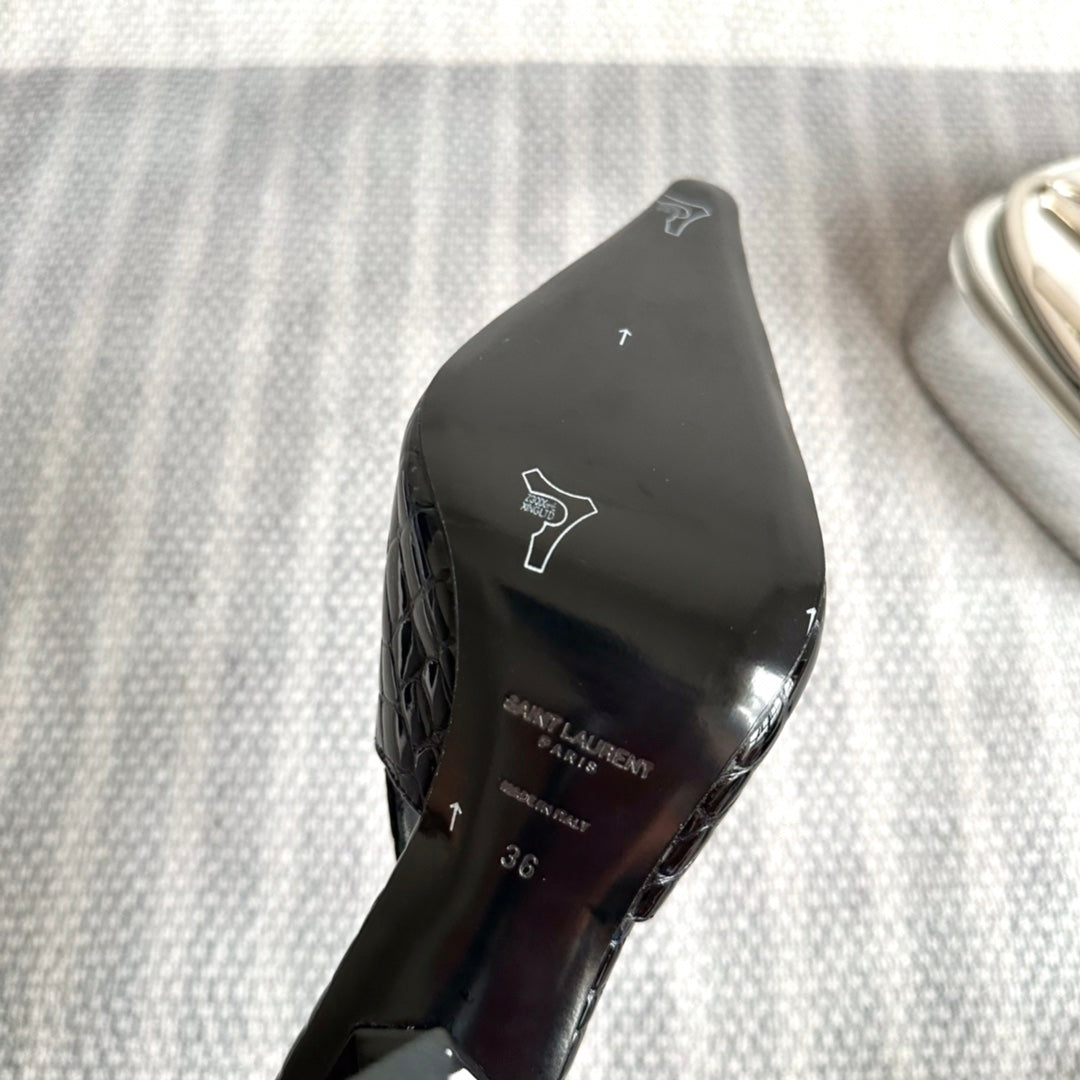LEE SLINGBACK PUMPS 105 IN BLACK CROCODILE-EMBOSSED LEATHER