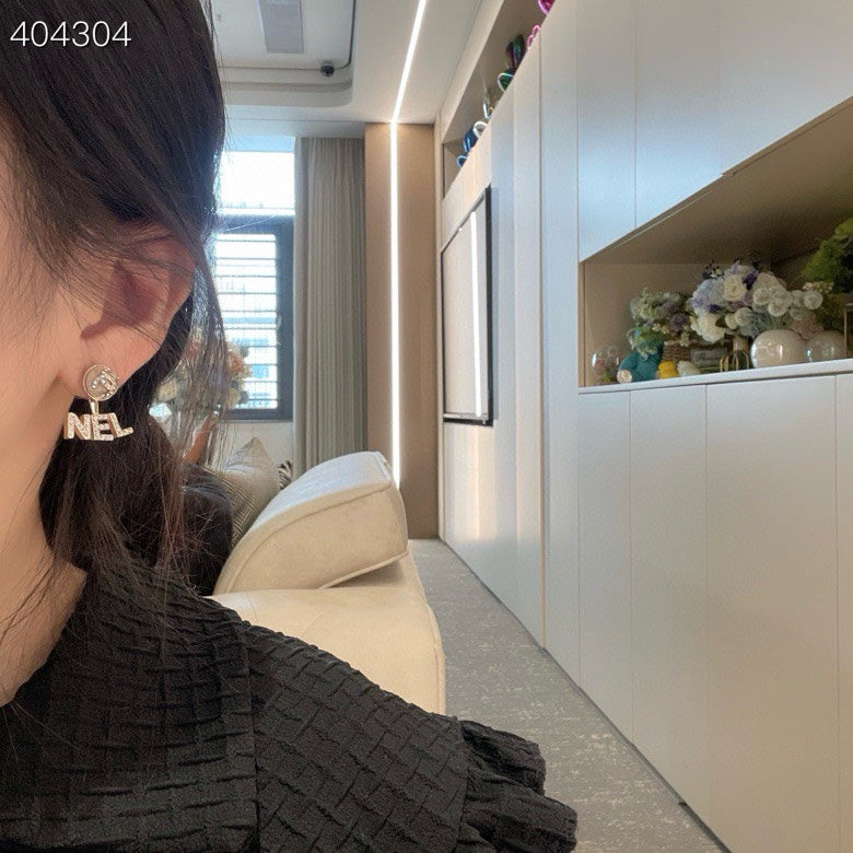 LETTERS CRYSTALS EARRINGS IN METAL GOLD WITH PEARLS
