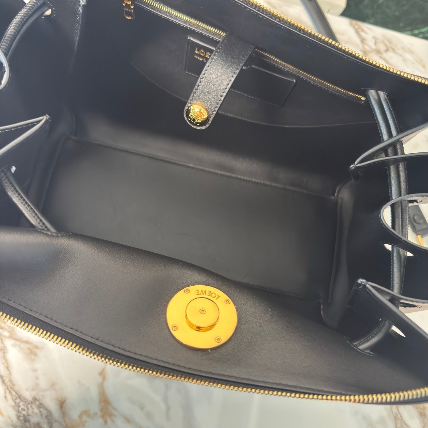 LOEWE 25S LARGE MADRID BAG 33 IN BLACK CALFSKIN GOLD HARDWARE
