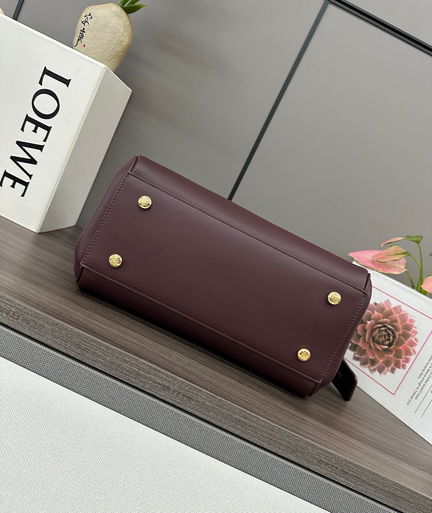 LOEWE 25S MADRID BAG 28 IN DARK WINE CALFSKIN GOLD HARDWARE