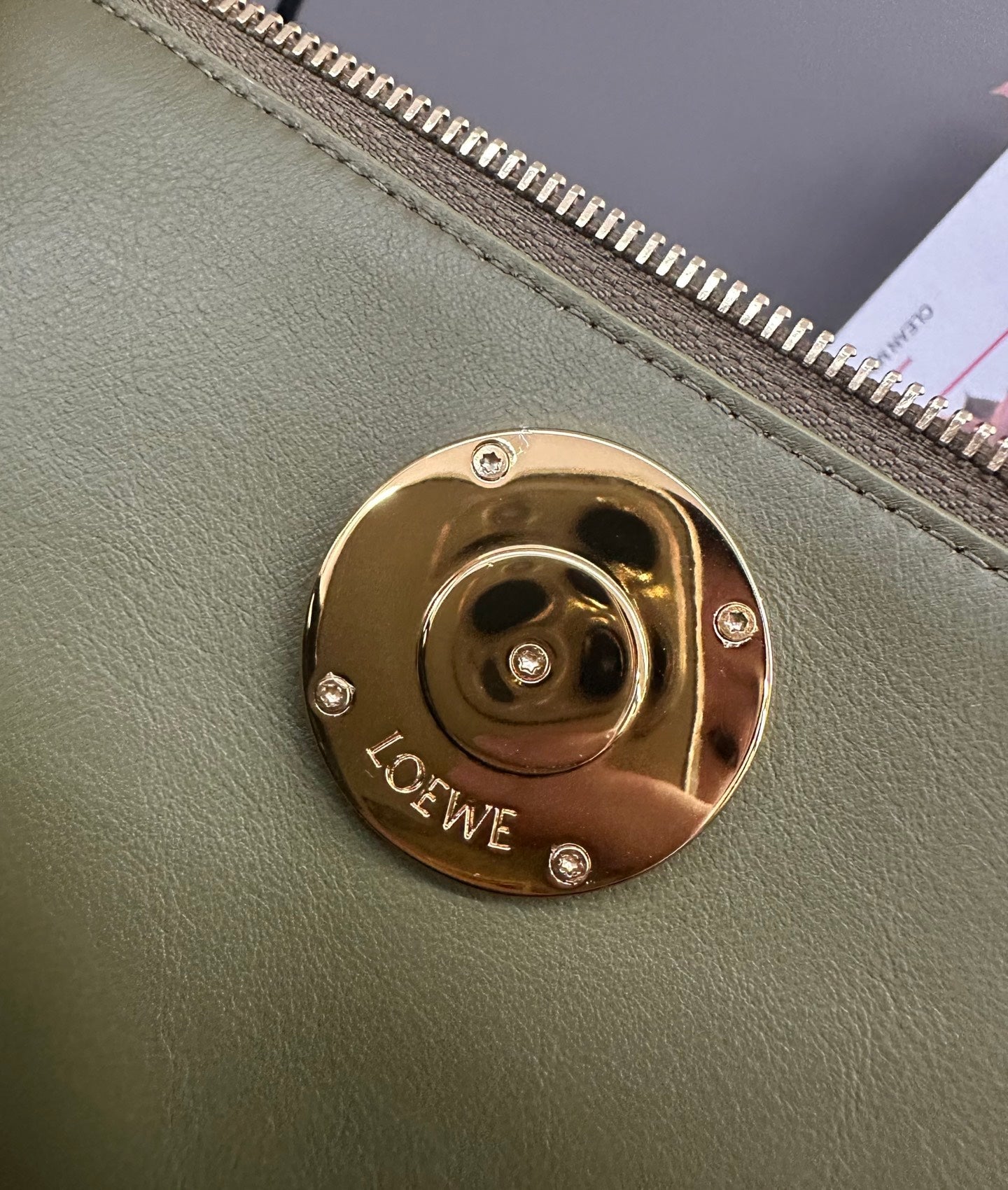LOEWE 25S MADRID BAG 28 IN OLIVE GREEN CALFSKIN GOLD HARDWARE