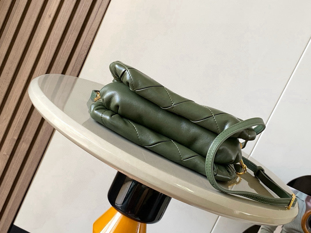 LOEWE 25S PUFFER GOYA BAG 20 IN DARK OLIVE GREEN NAPPA LAMBSKIN