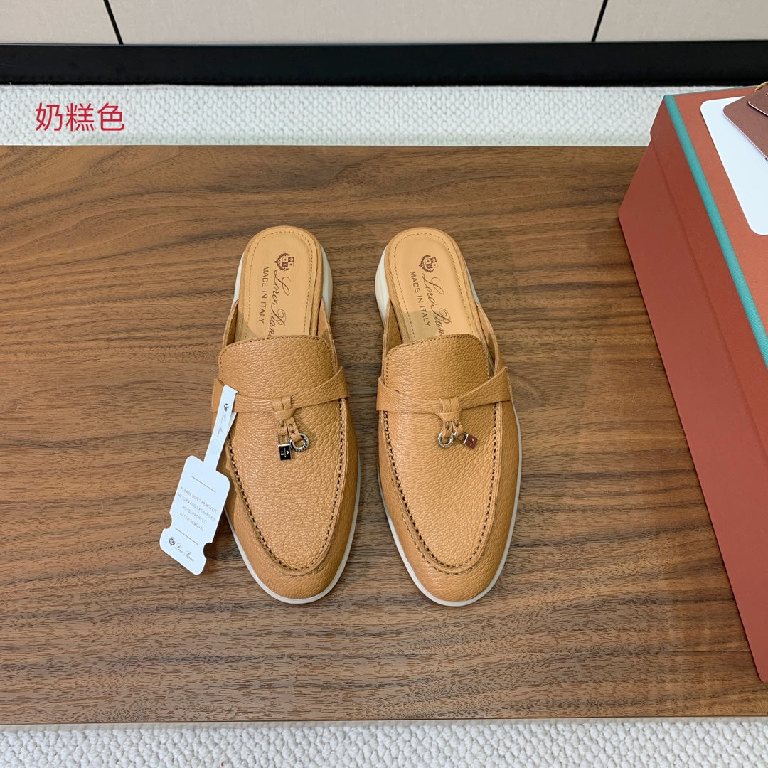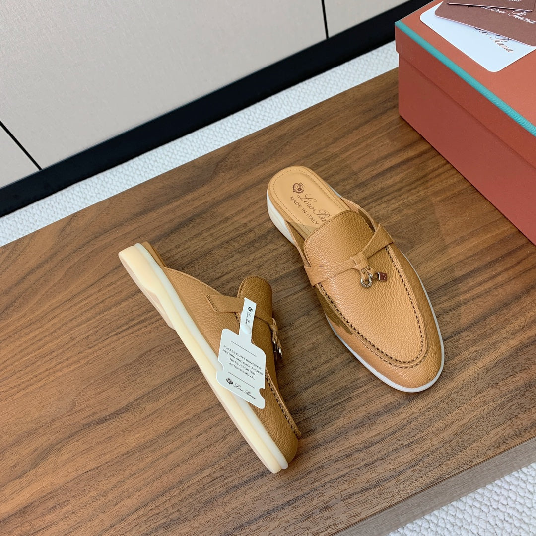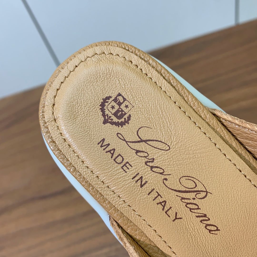 LP FLAT MULES 25S IN BROWN LAMBSKIN WITH SILVER HARDWARE