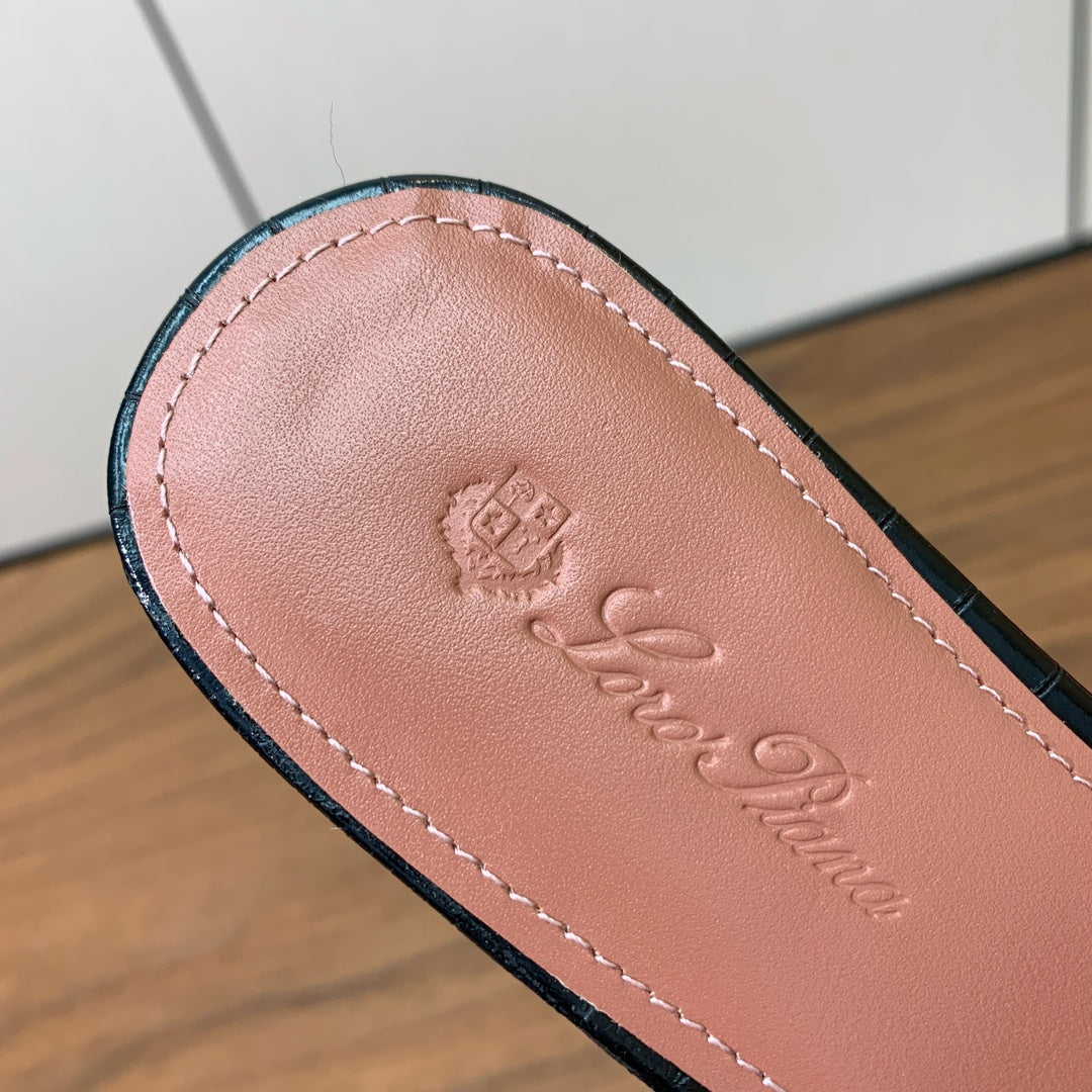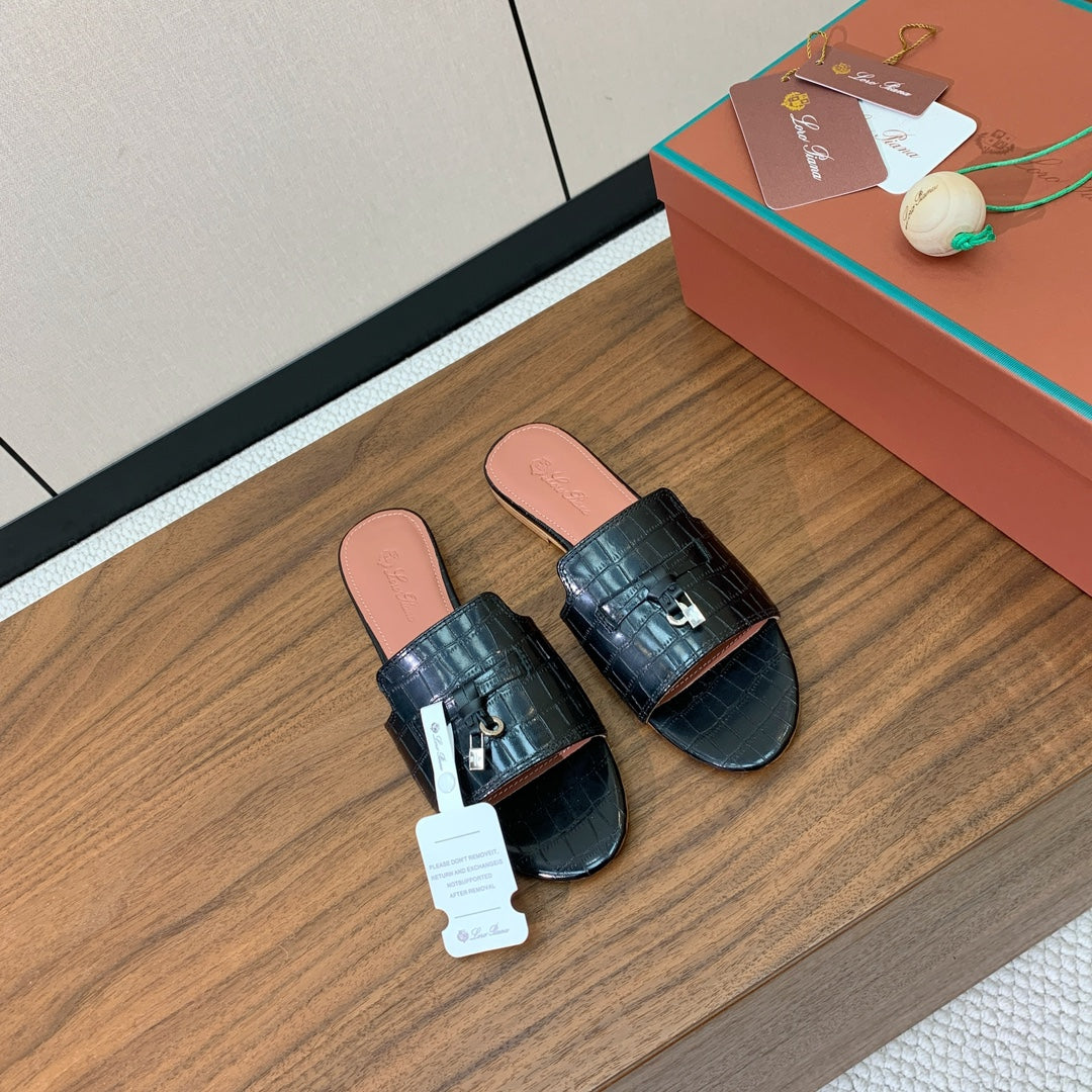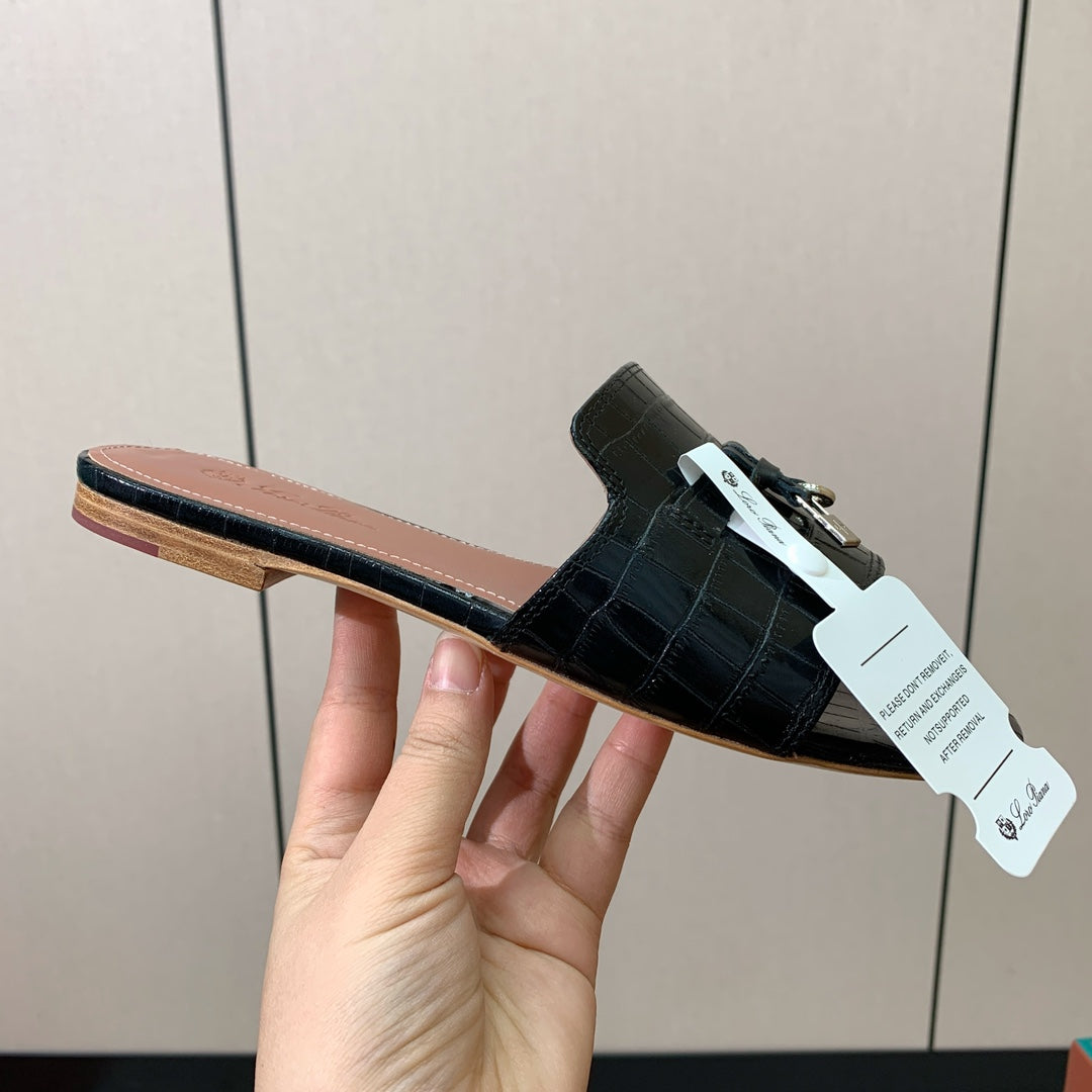LP OSTRICH-EMBOSSED FLAT SANDALS 25S IN BLACK LAMBSKIN