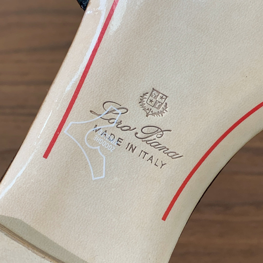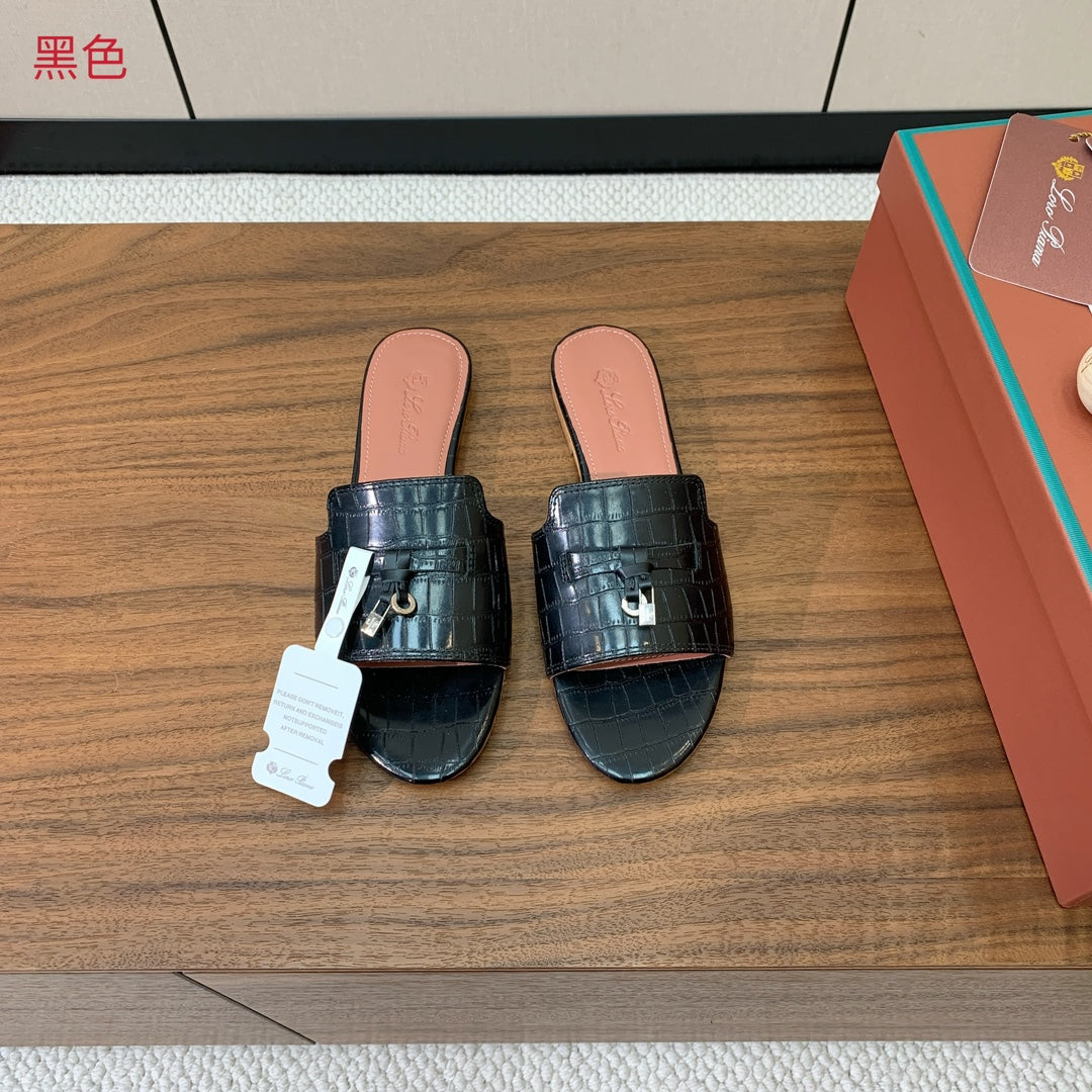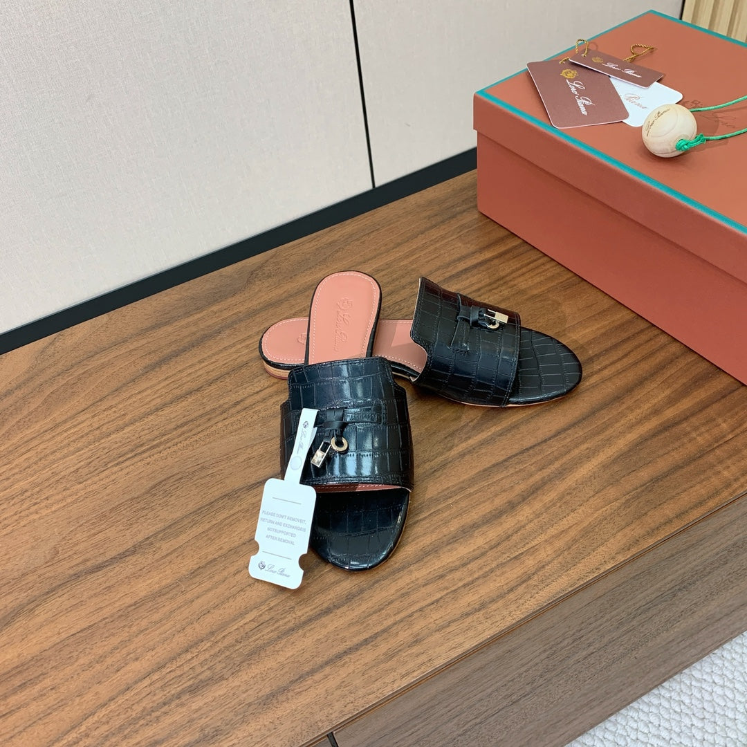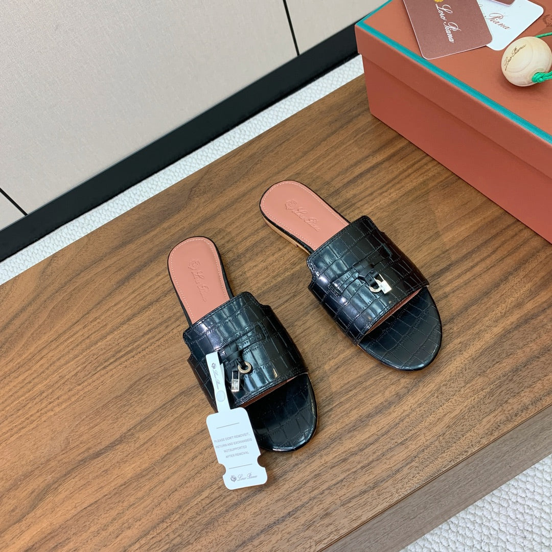 LP OSTRICH-EMBOSSED FLAT SANDALS 25S IN BLACK LAMBSKIN