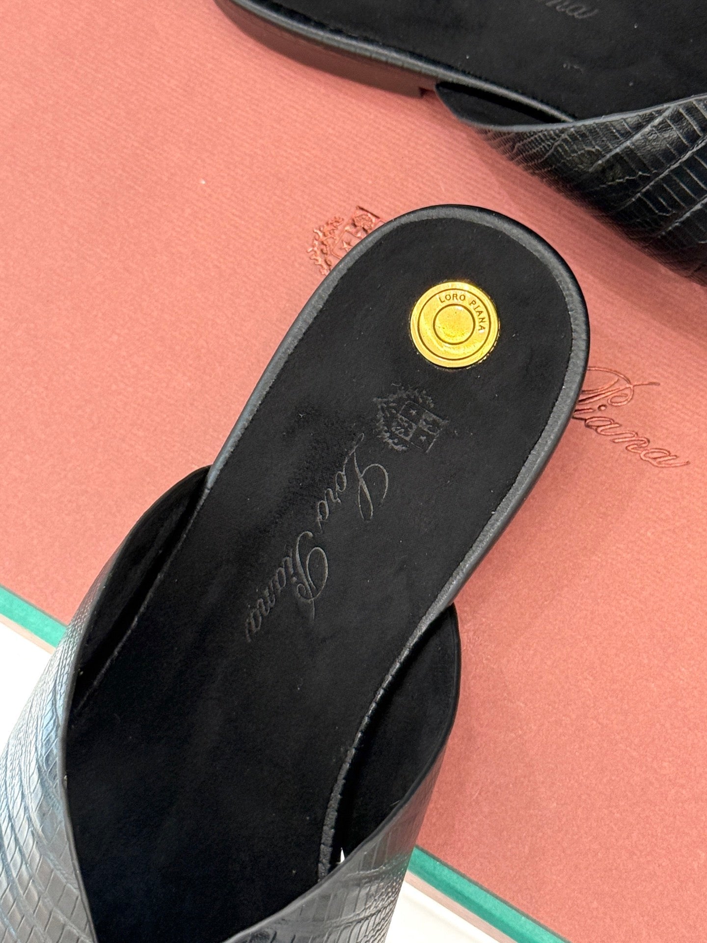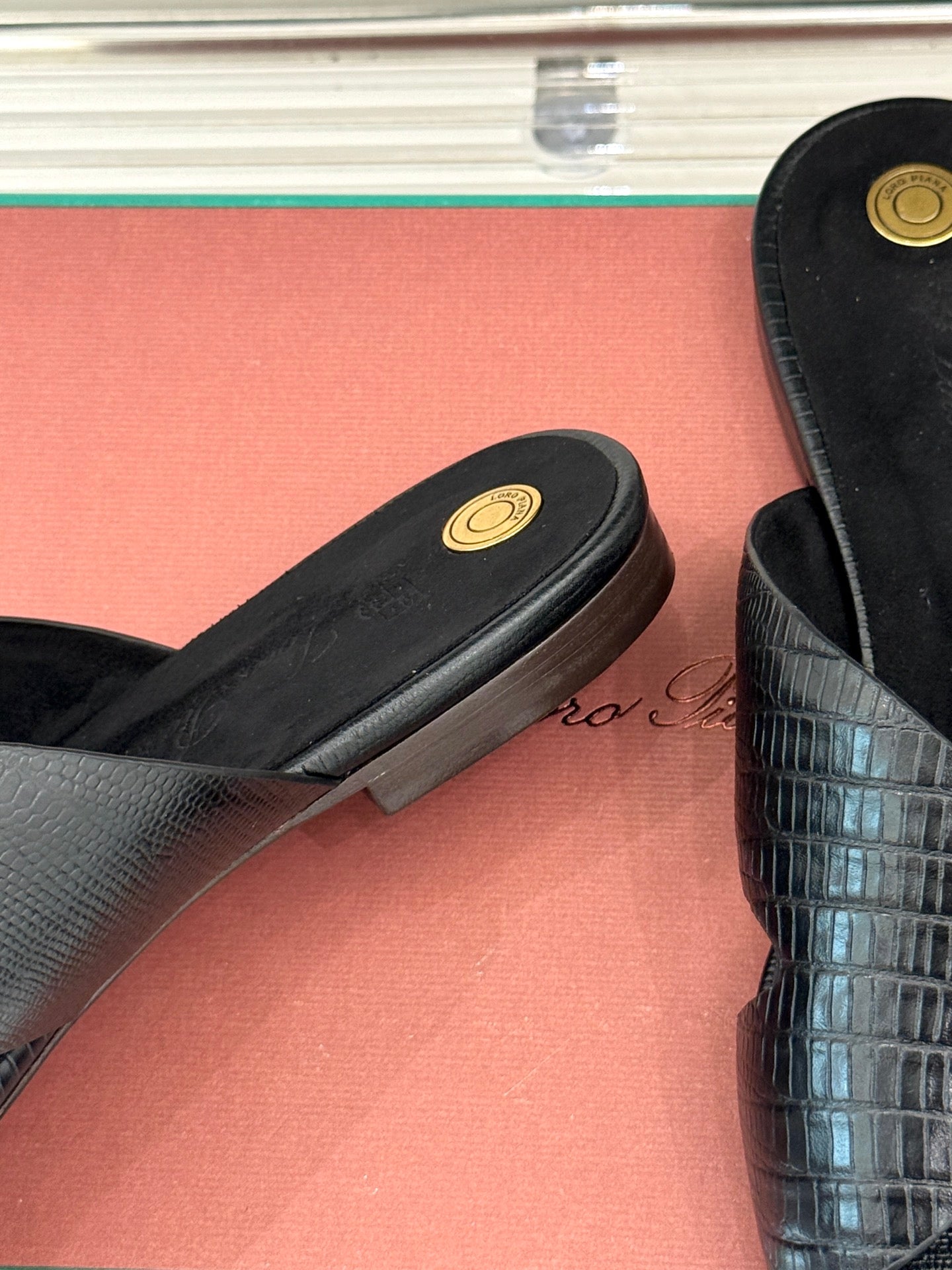 LP SANDALS 25S IN BLACK LAMBSKIN SNAKE EMBOSSING
