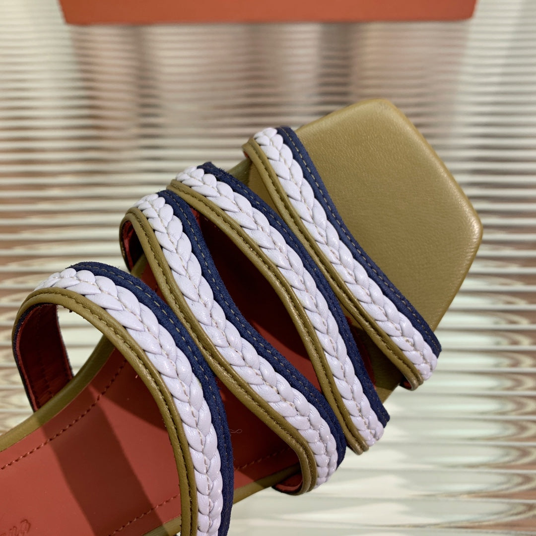 LP SPRIGHTLY CHARMS FLAT SANDAL WHITE AND OLIVE CALFSKIN