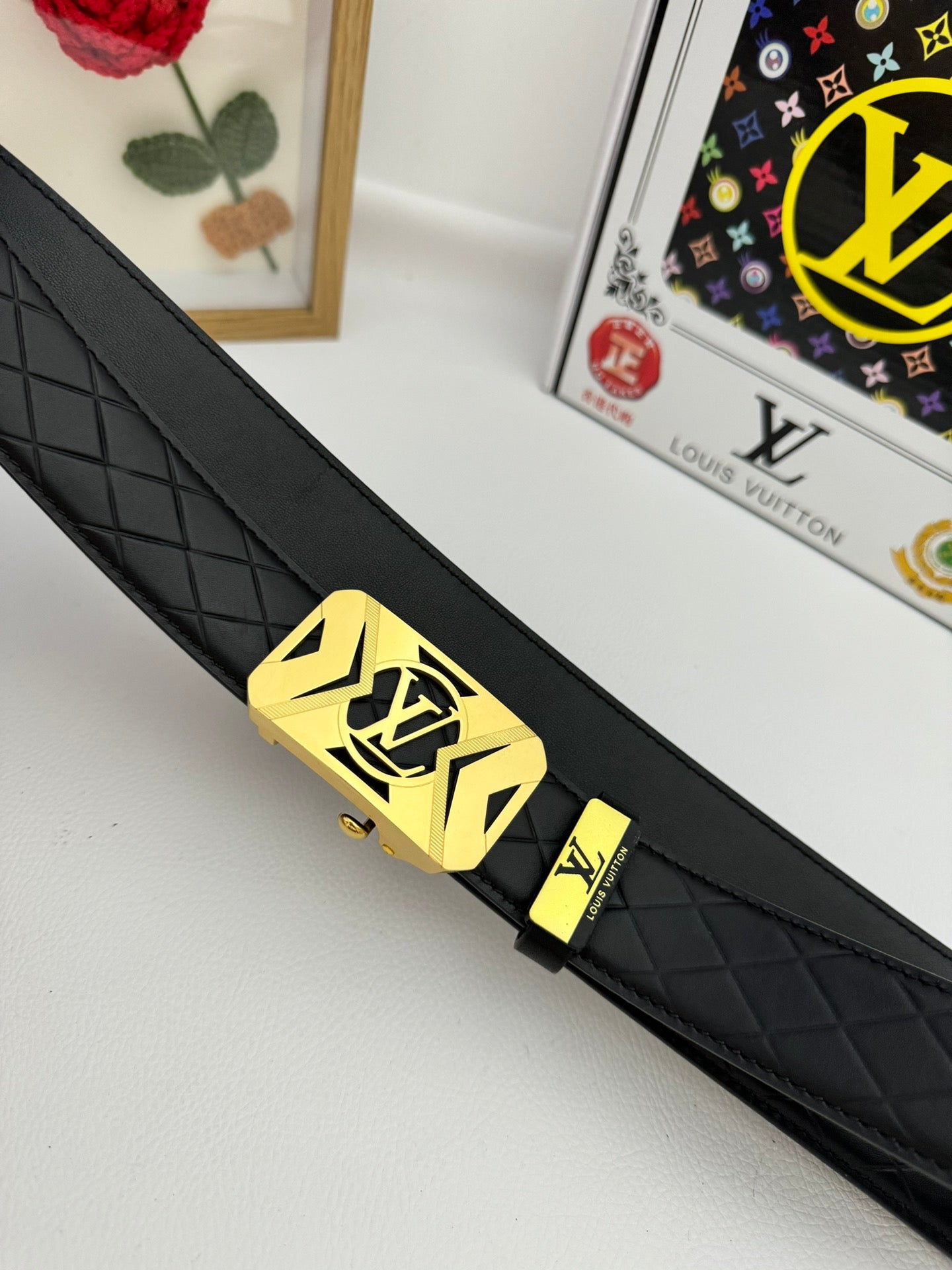 LV 25S BELT 35 MM IN BLACK CALFSKIN 593219