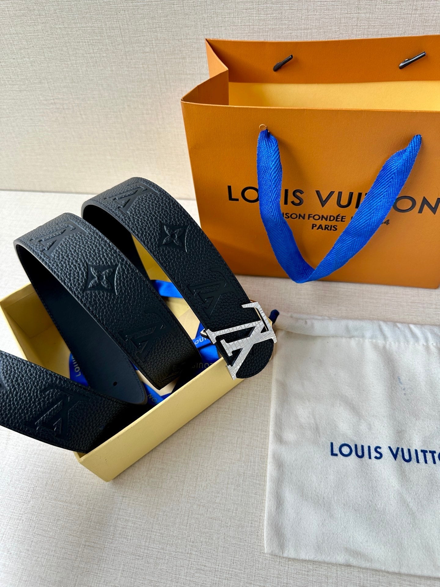 LV 25S BELT 40 MM IN BLACK CALFSKIN WITH SILVER HARDWARE 593265