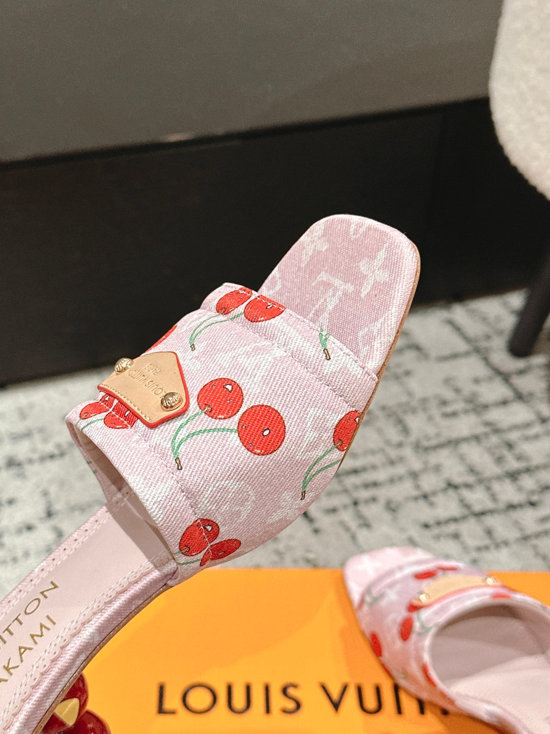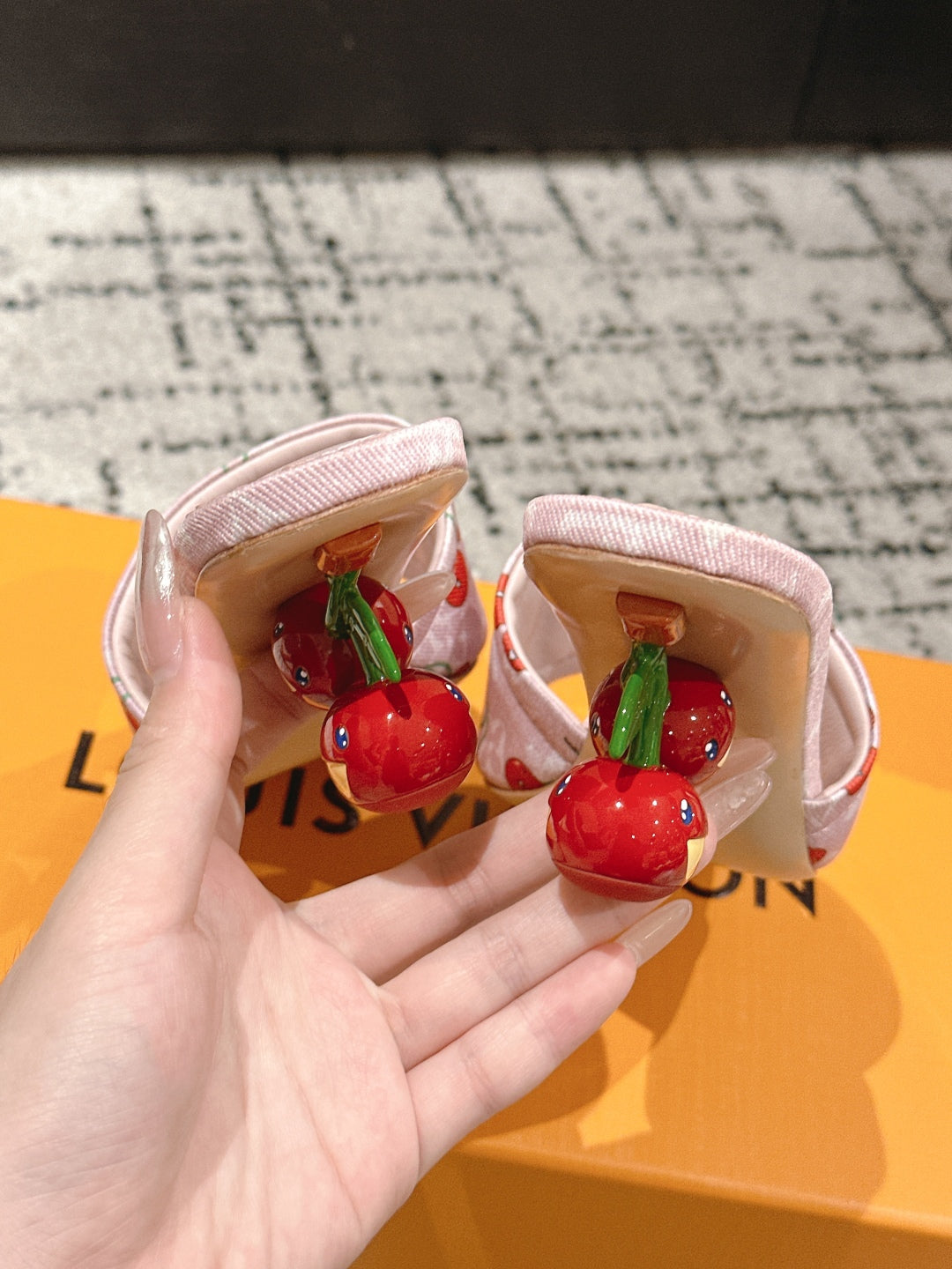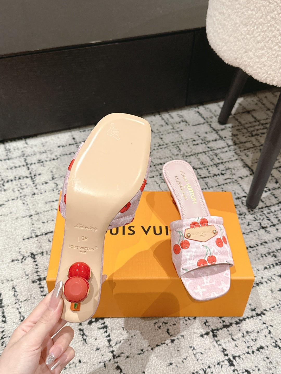 LV CHERRY HIGH HEELS 25S 55 MM IN LIGHT PINK DENIM STYLE 8