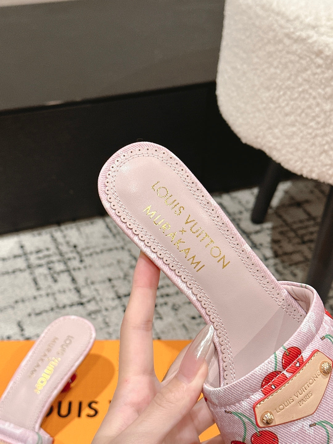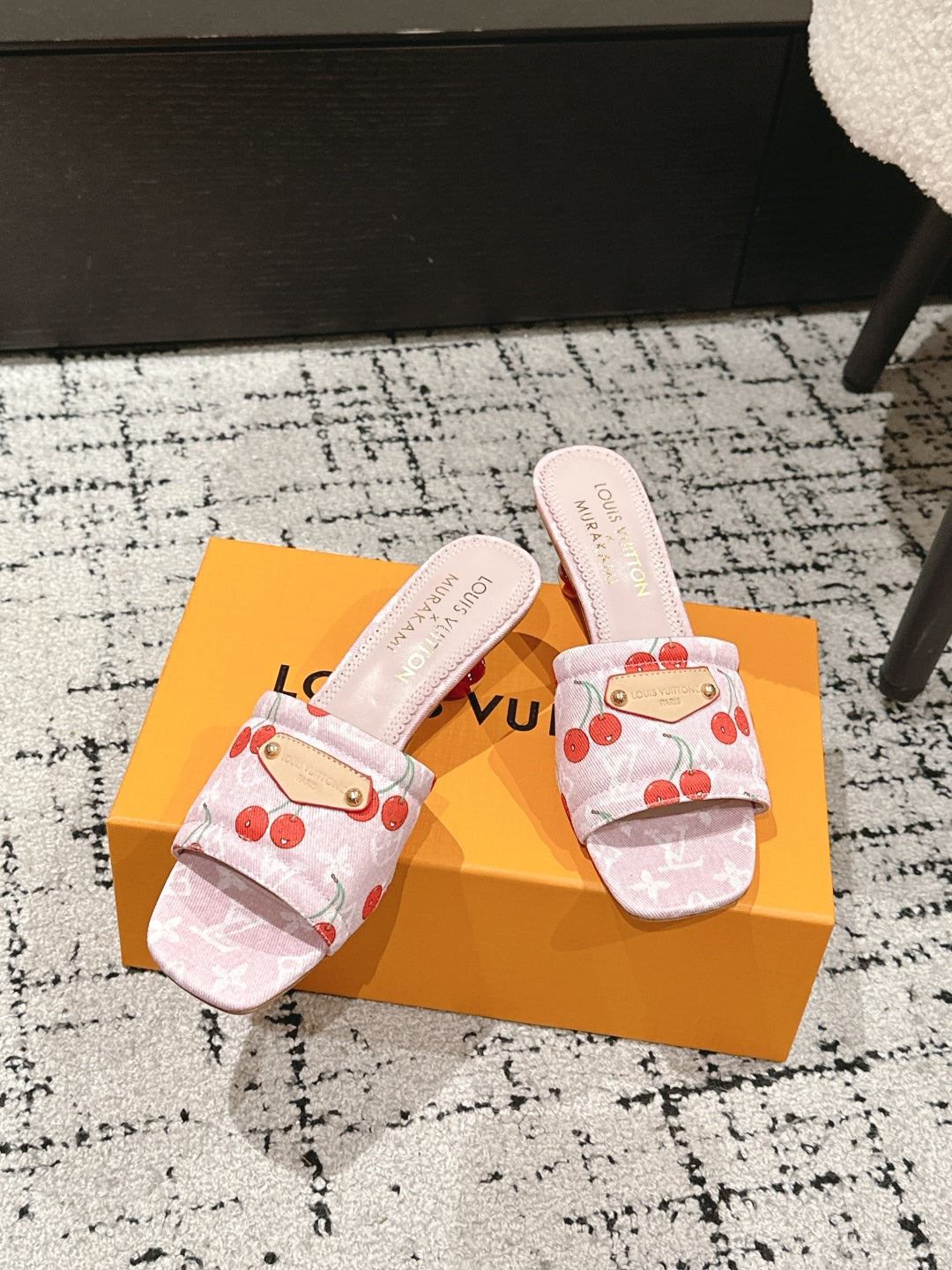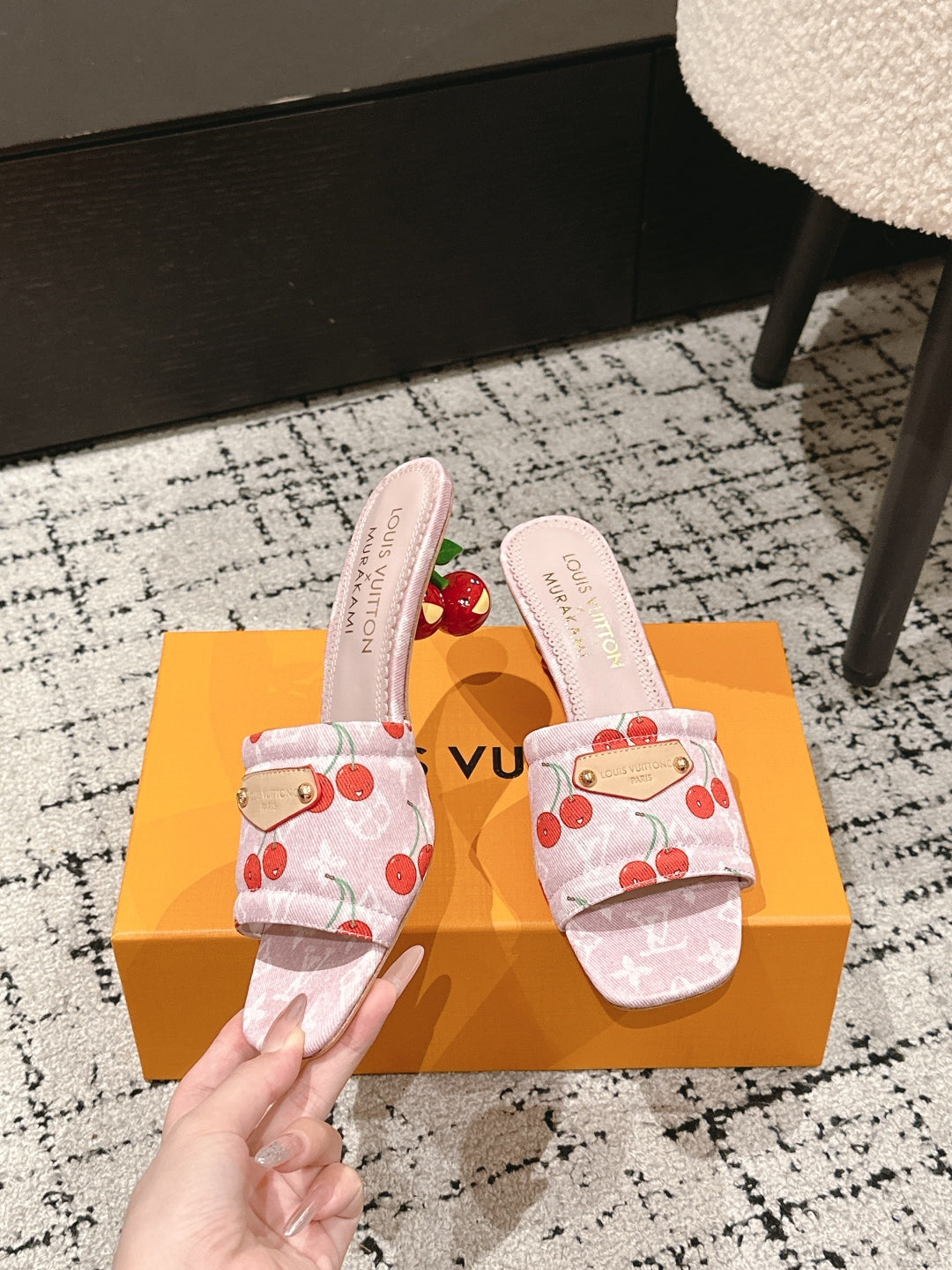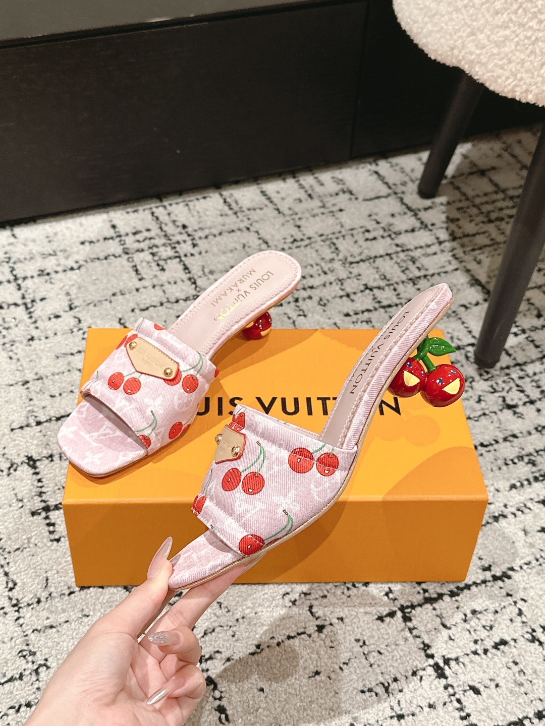 LV CHERRY HIGH HEELS 25S 55 MM IN LIGHT PINK DENIM STYLE 8