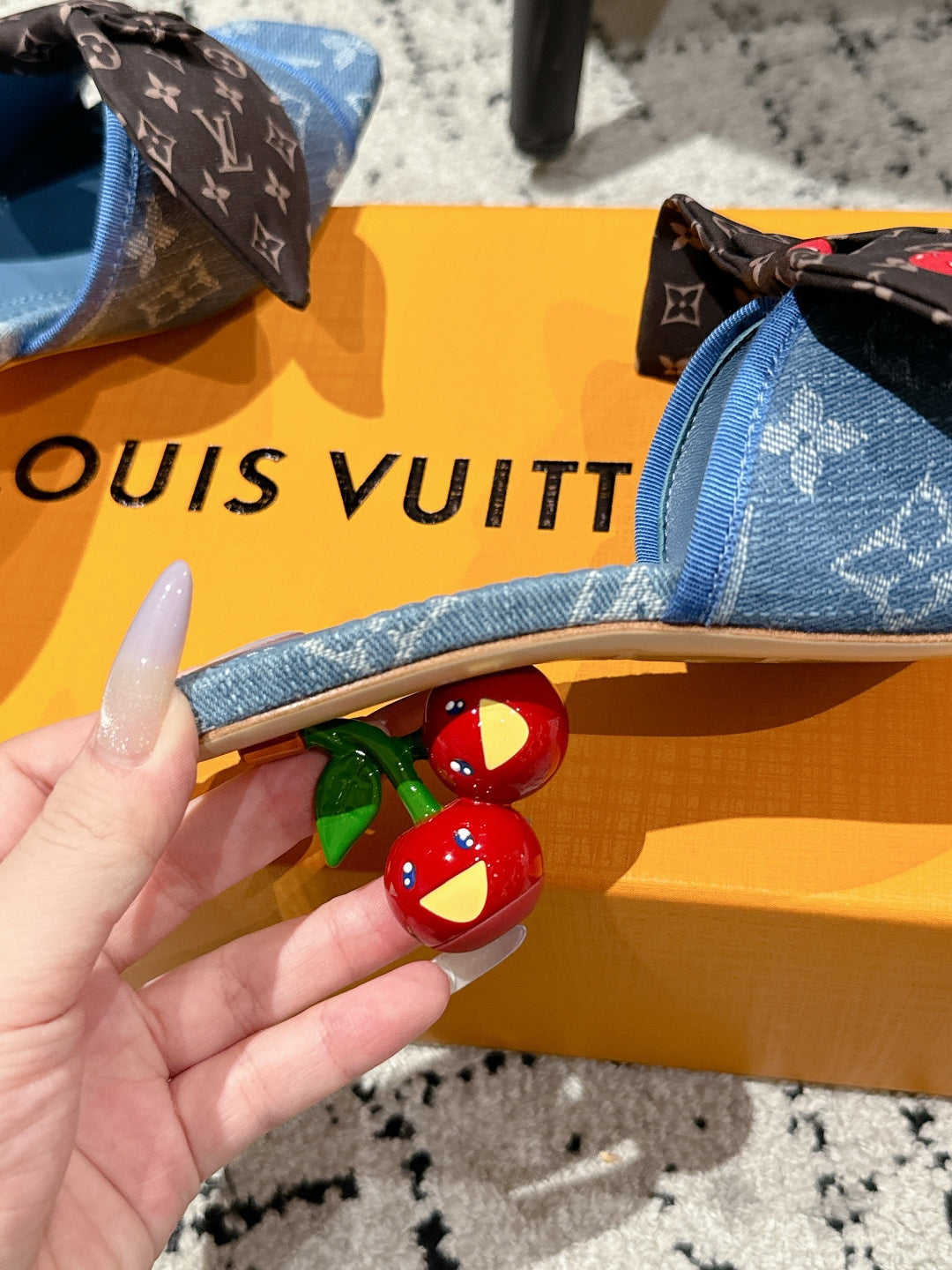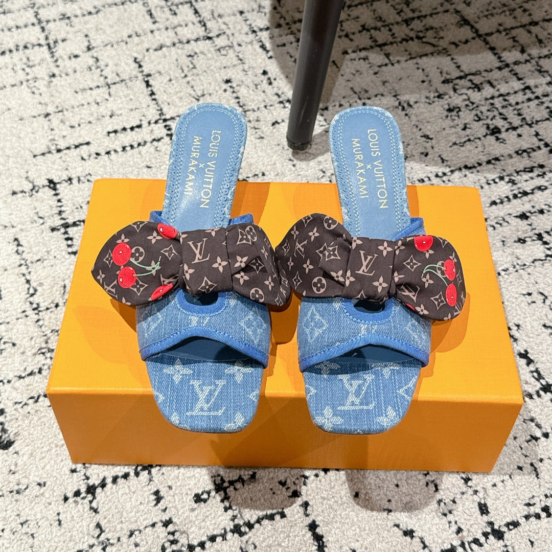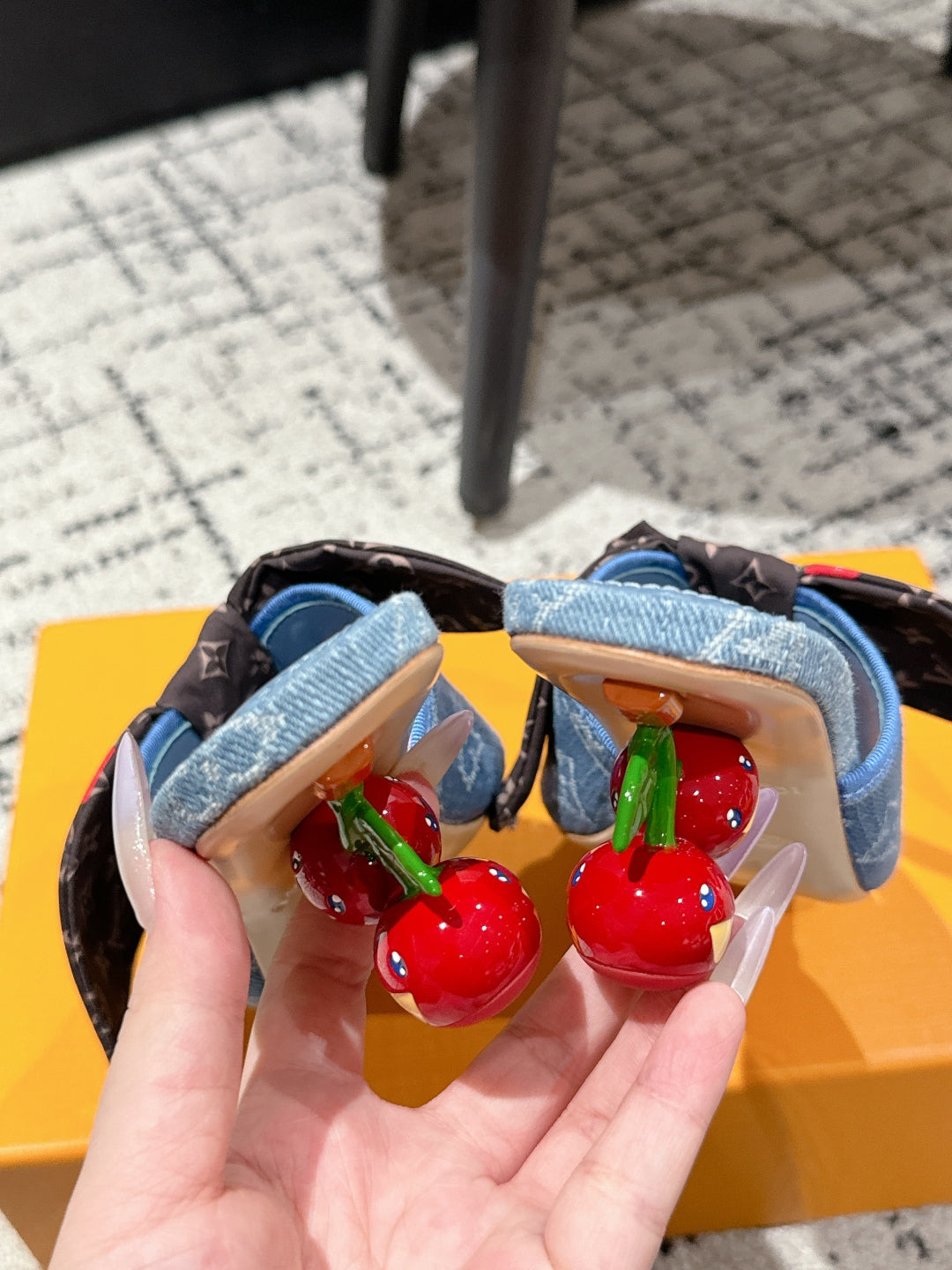 LV CHERRY HIGH HEELS 25S IN BLUE DENIM WITH BOW STYLE 8