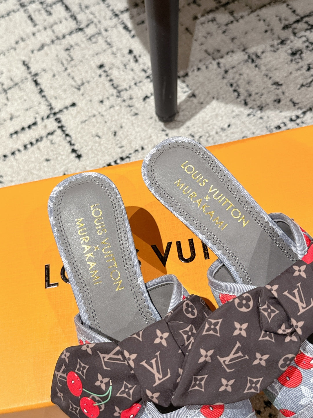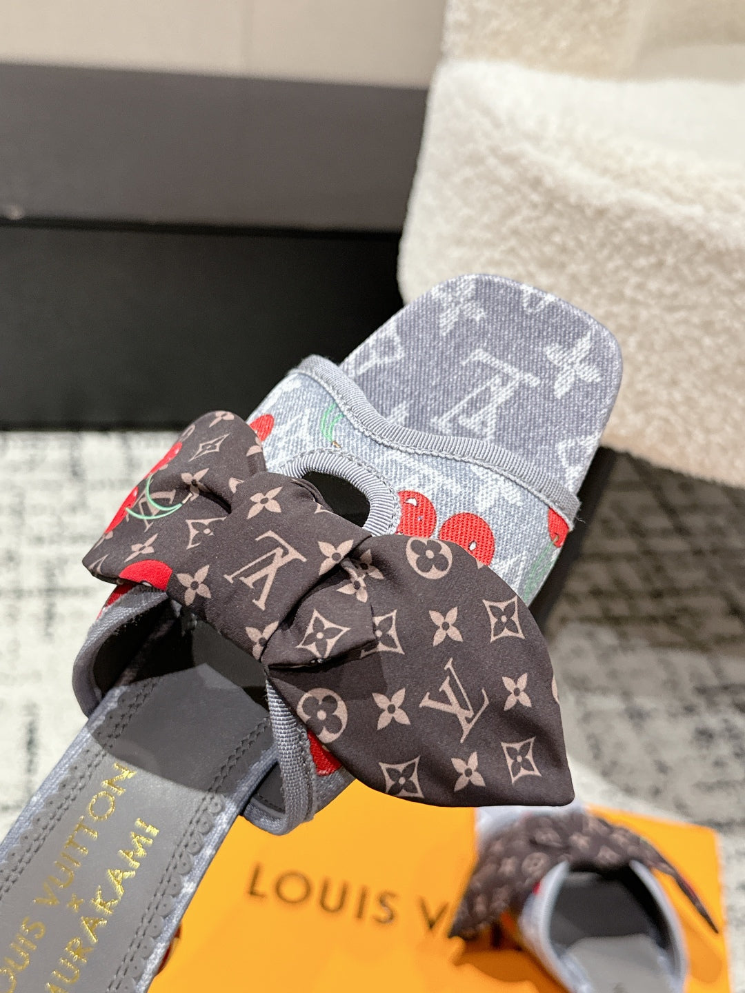 LV CHERRY HIGH HEELS 25S IN GREY DENIM WITH BOW STYLE 1