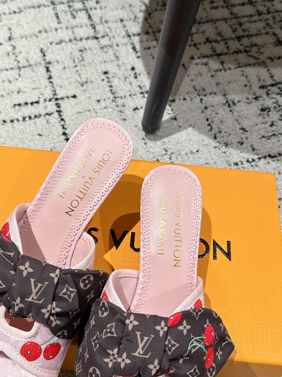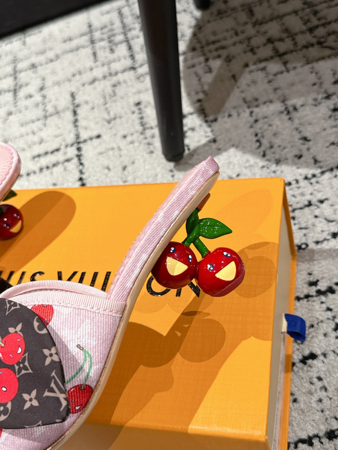 LV CHERRY HIGH HEELS 25S IN LIGHT PINK DENIM WITH BOW STYLE 4