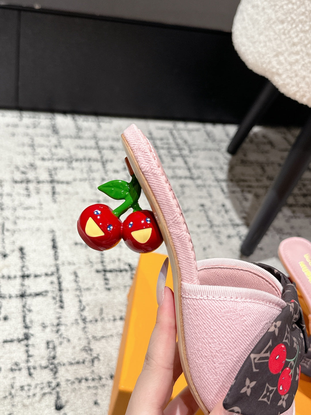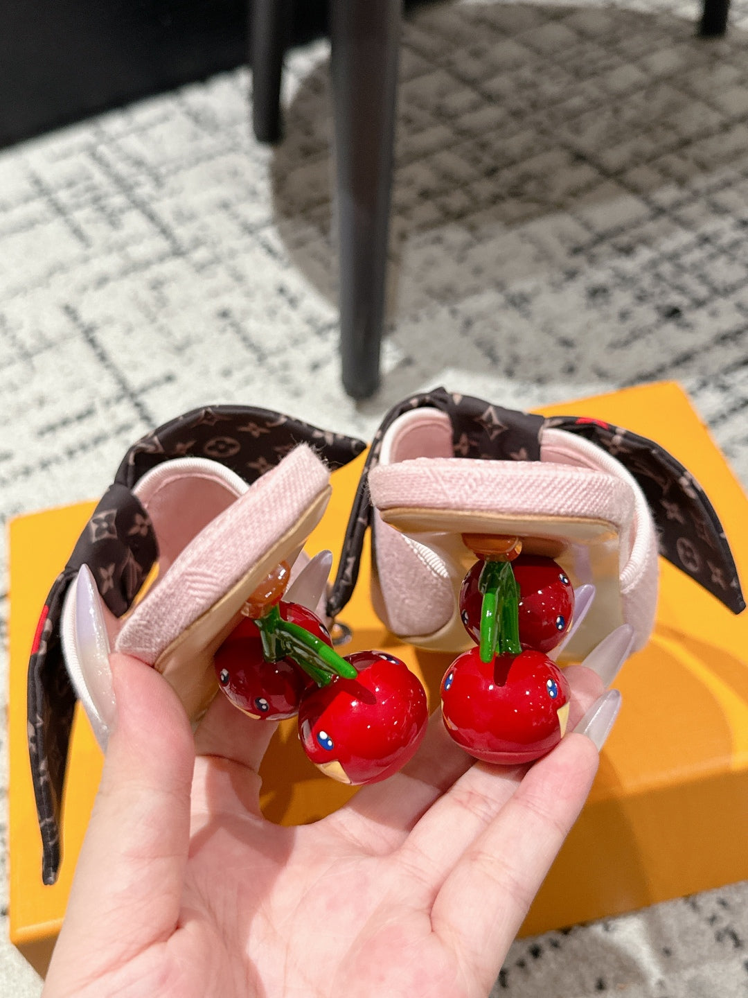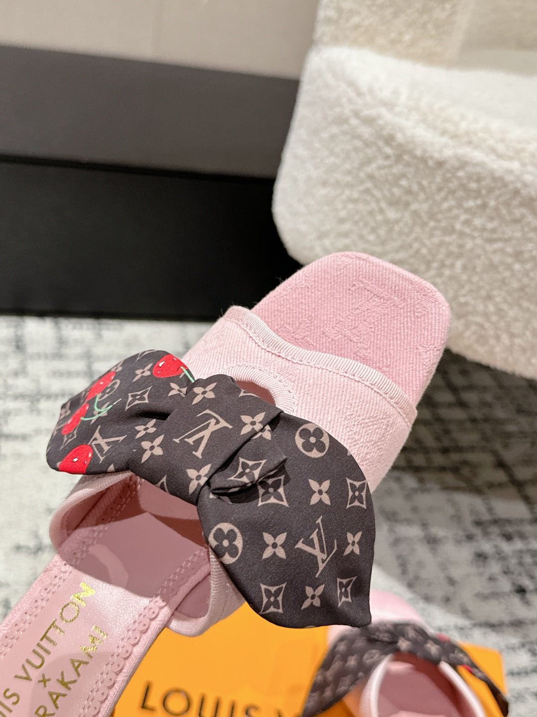 LV CHERRY HIGH HEELS 25S IN LIGHT PINK DENIM WITH BOW STYLE 6