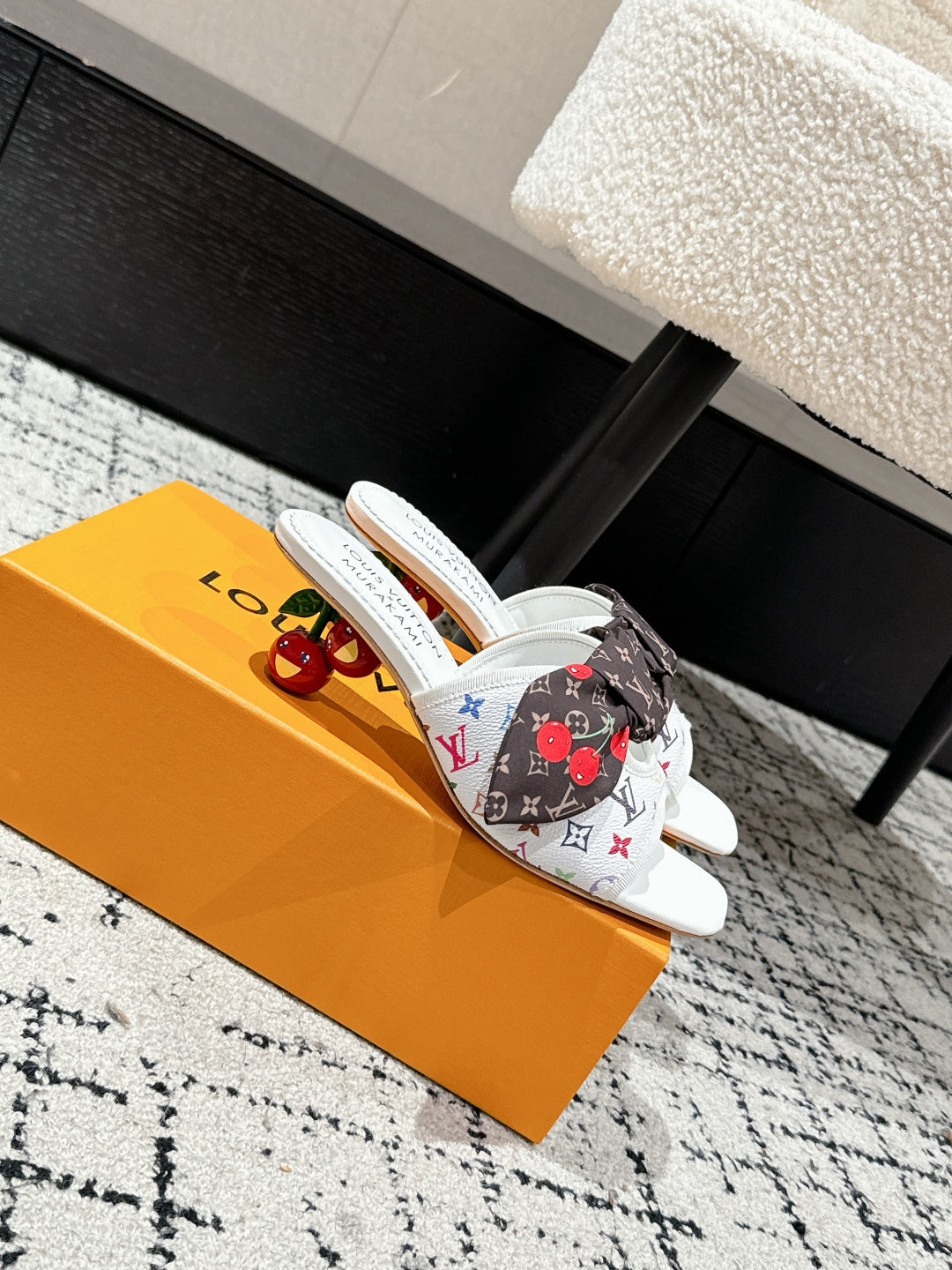 LV CHERRY HIGH HEELS 25S IN WHITE CALFSKIN WITH BOW STYLE 11