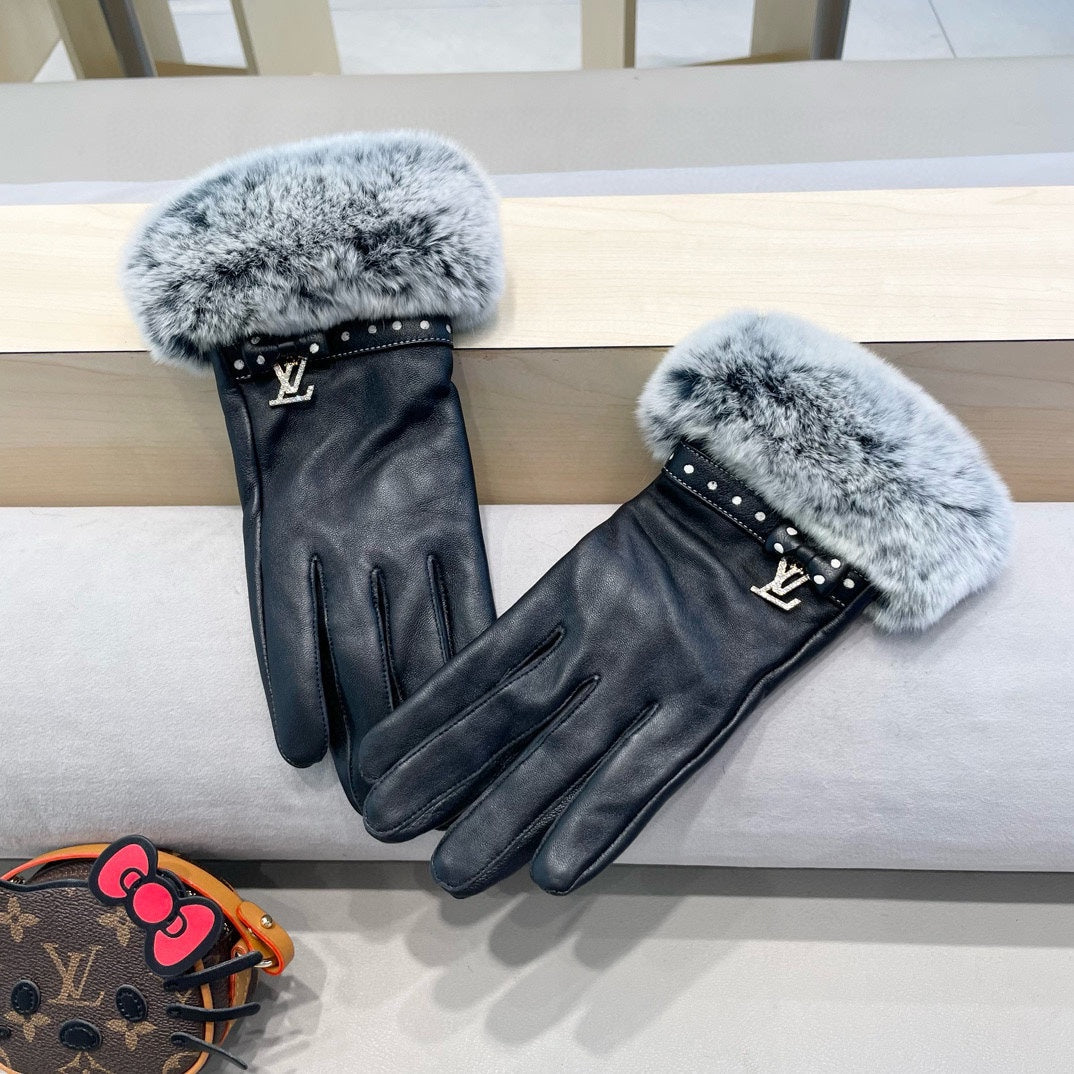 LV GLOVES IN BLACK LAMBSKIN WITH RABBIT FUR 462407