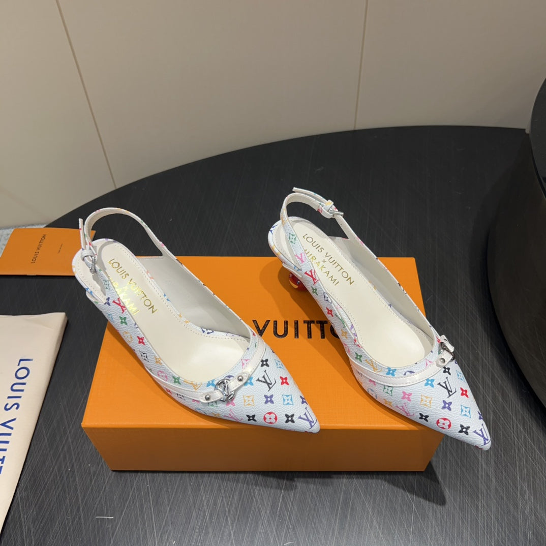 LV HIGH SLINGBACK LOGO PRINT 25S 55 MM IN WHITE CALFSKIN