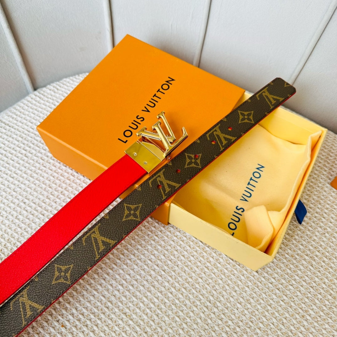 LV Initiales 30mm Reversible Belt Gold Rotating Buckle Red Brown Leather