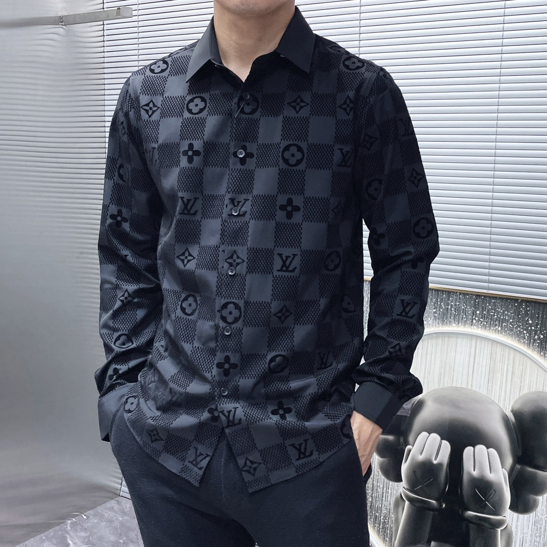 LV LONG-SLEEVED SHIRT IN BLACK DAMIER COTTON 238803