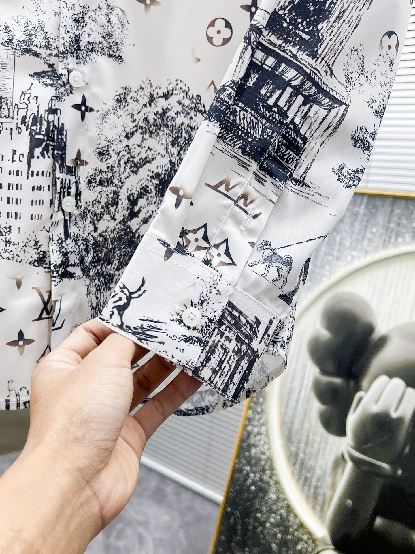 LV LONG-SLEEVED SHIRT WHITE COTTON ALLOVER MONOGRAM CITY WALK PRINT 238817