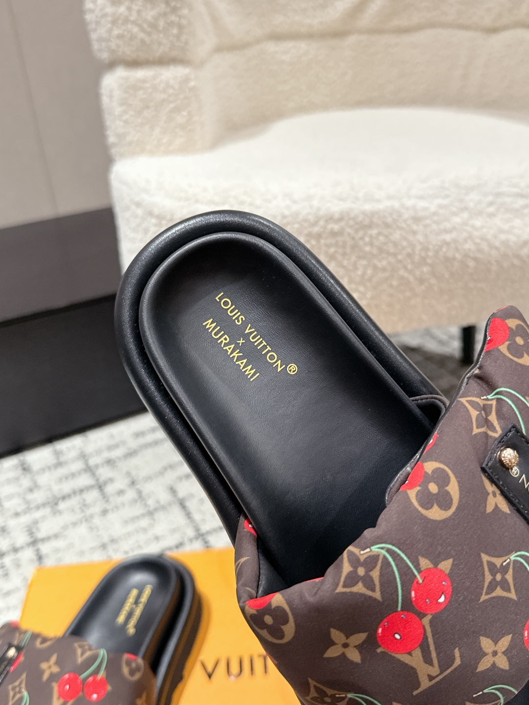LV MIAMI-STYLE SANDALS 25S IN BROWN FABRIC AND BLACK CALFSKIN