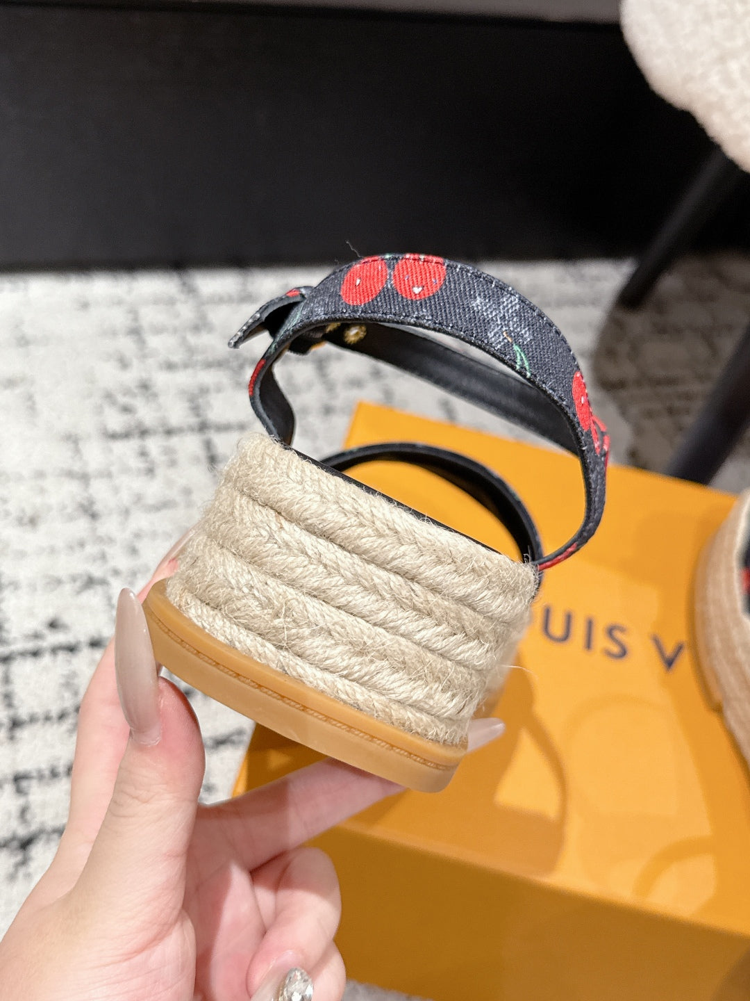 LV PLATFORM ESPADRILLE SANDALS 25S IN NAVY BLUE DENIM