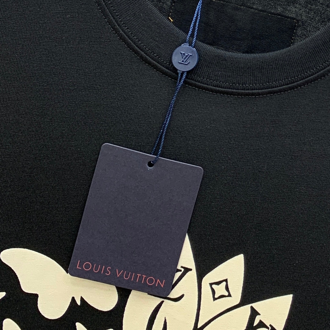 LV T-SHIRT IN BLACK PURE COTTON CLASSIC LOGO PATTERN 238881