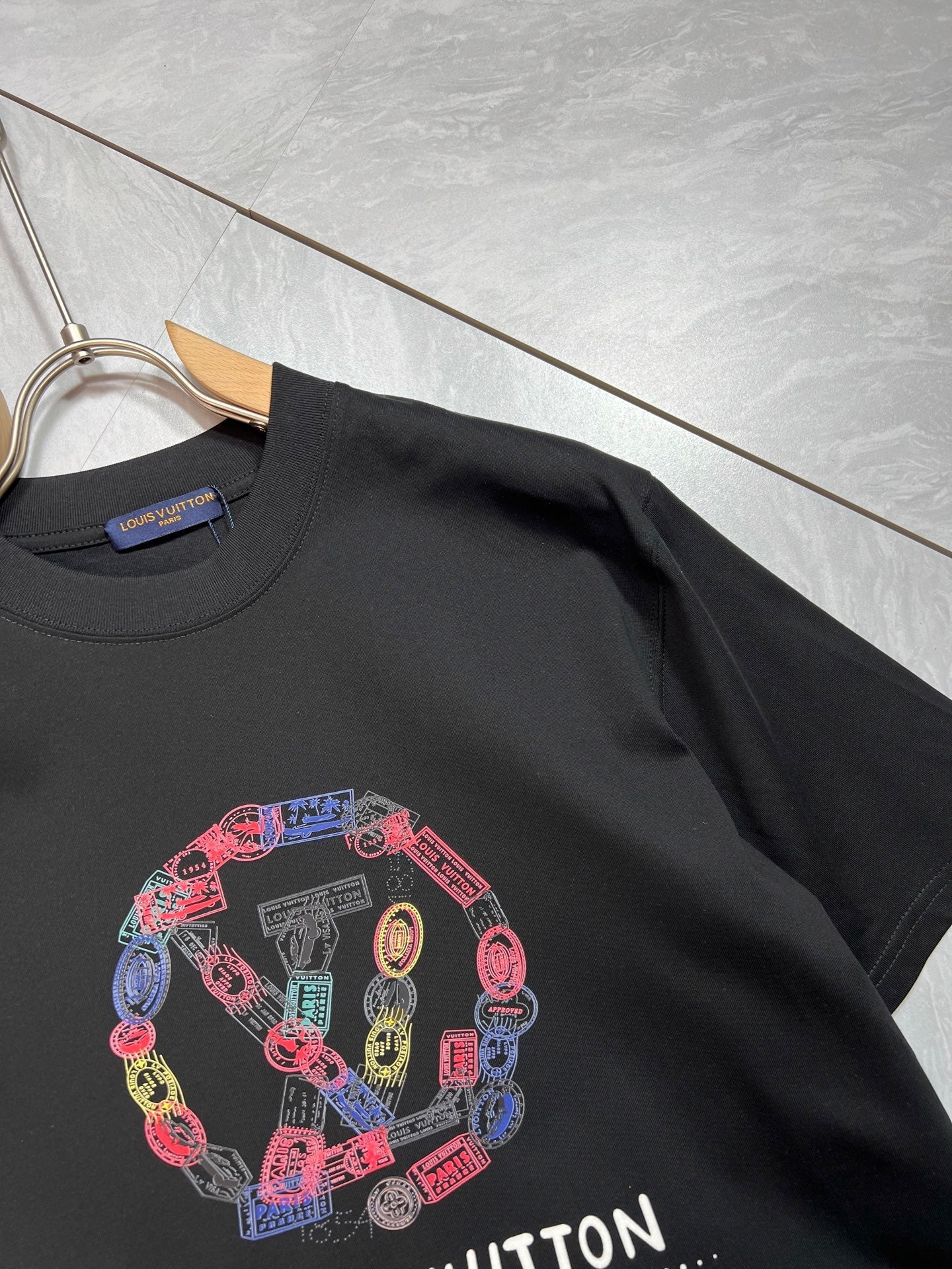 LV T-SHIRT IN BLACK PURE COTTON COLORFUL LOGO 238924