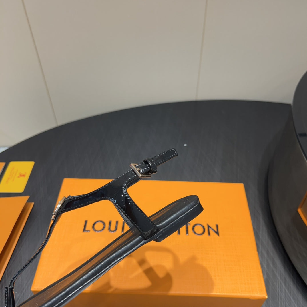 LV THONG SANDALS 25S IN BLACK CALFSKIN WITH GOLD HARDWARE