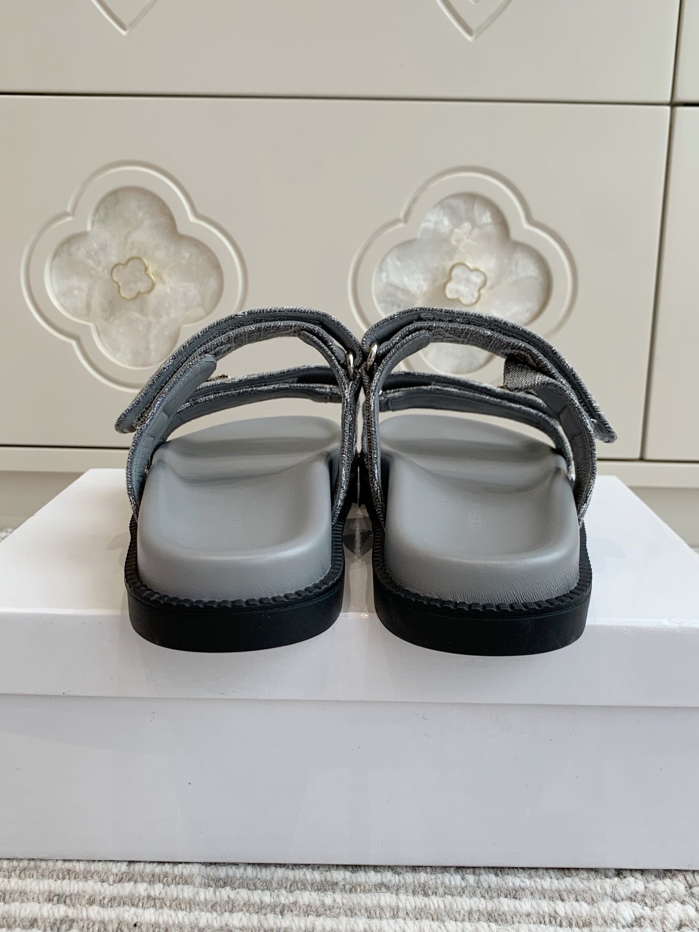 LV TWO-STRAP SANDALS 25S IN GREY DENIM AND CALFSKIN  WITH SILVER HARDWARE