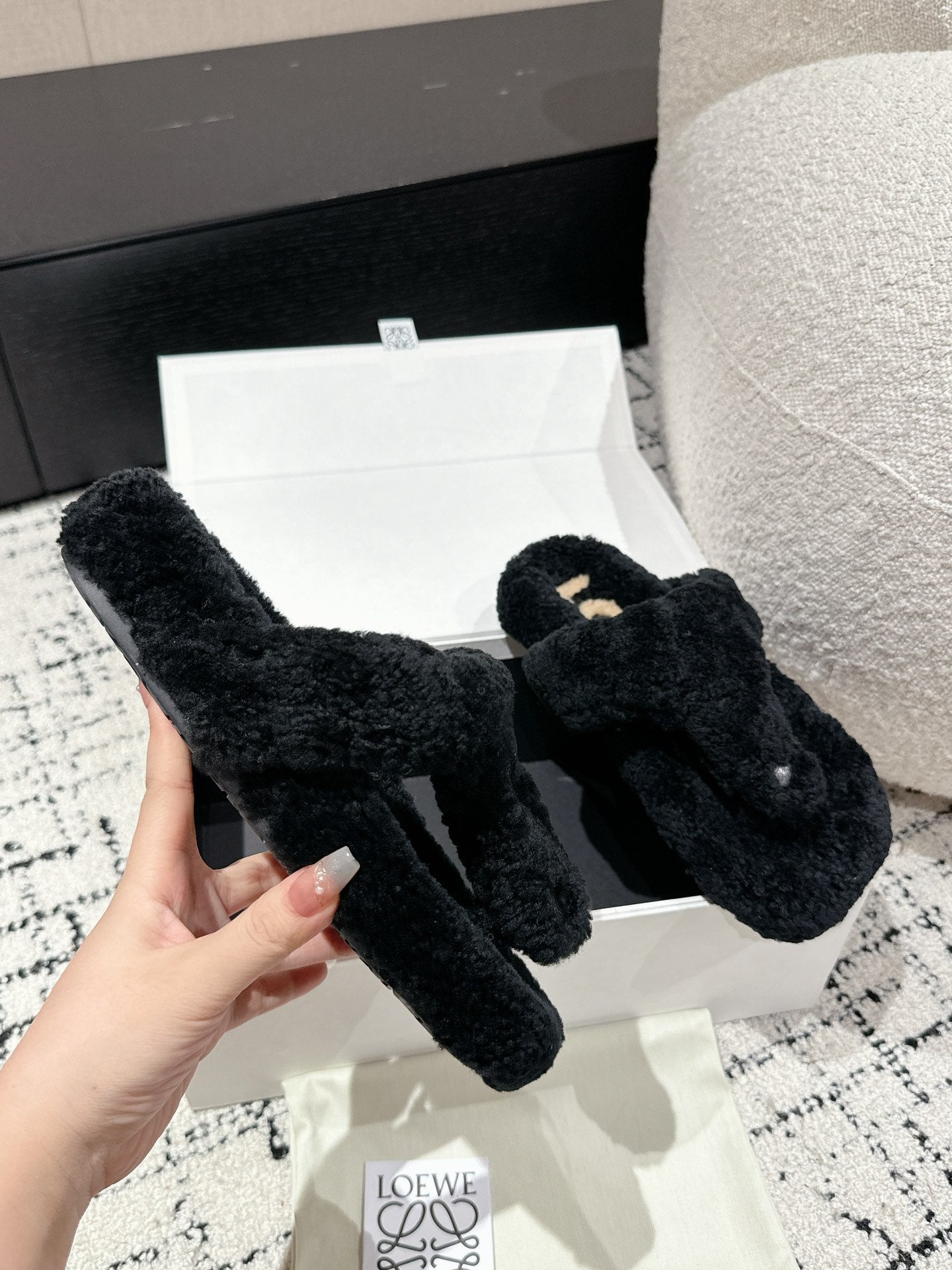 LW SHEARLING THONG SLIPPER IN BLACK