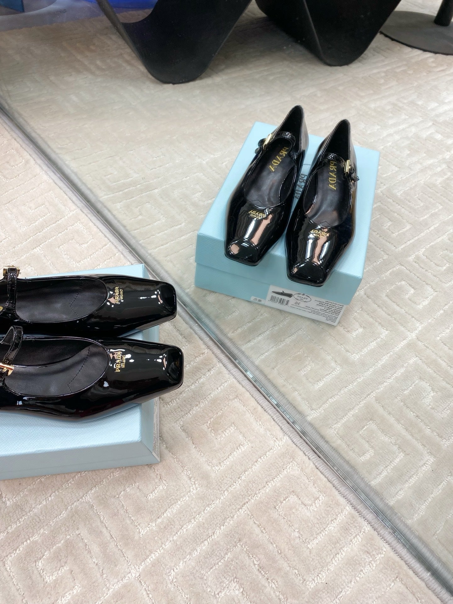 MARY JANE FLATS SQUARE TOE IN BLACK PATENT SHEEPSKIN