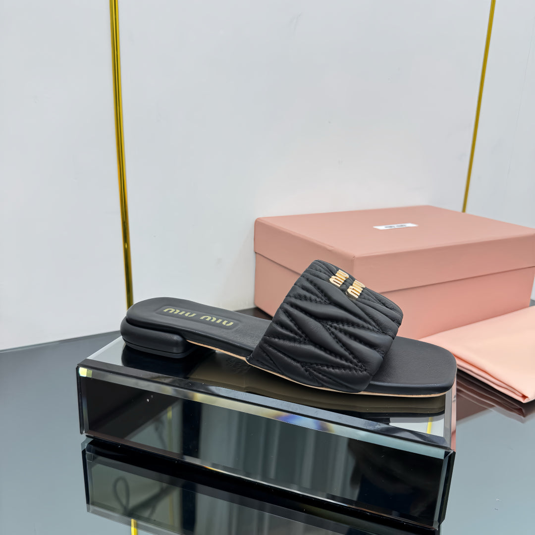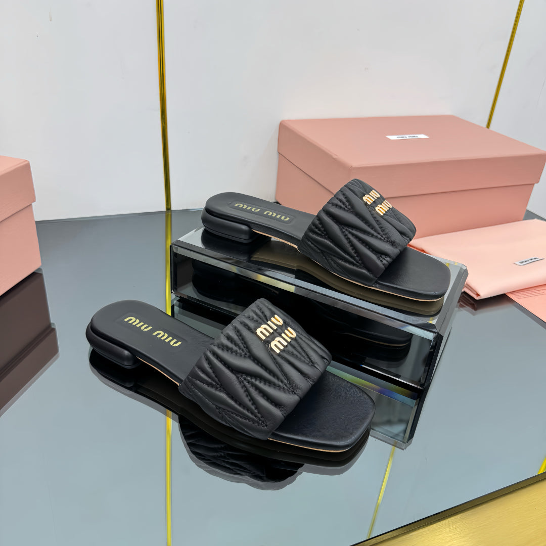 MATELASSÉ SLIDES IN BLACK CALFSKIN