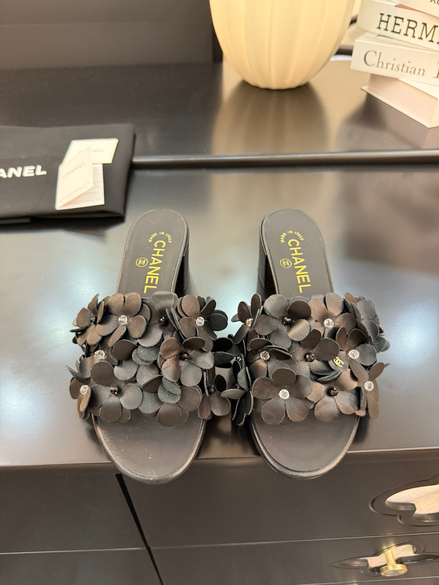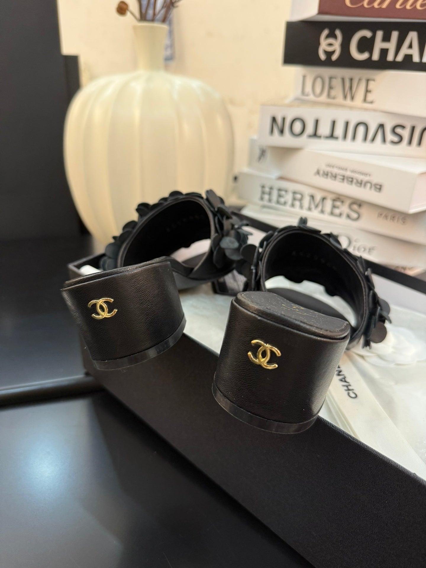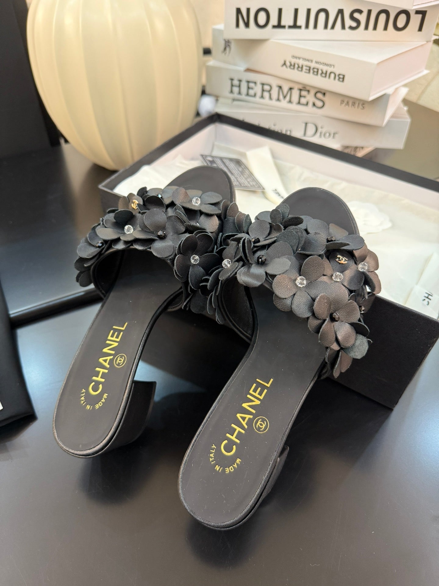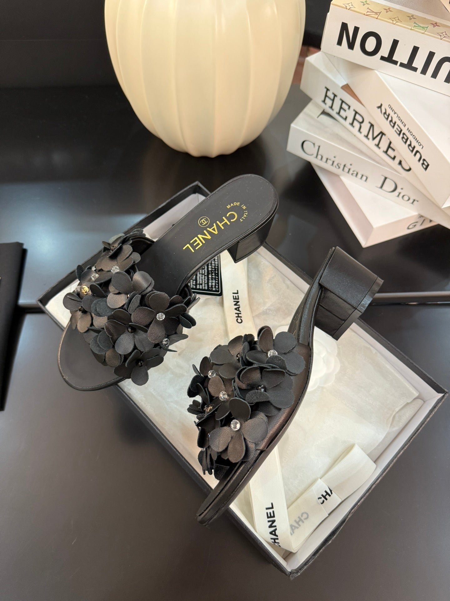 MID HEEL 45 MM MULE IN BLACK CALFSKIN